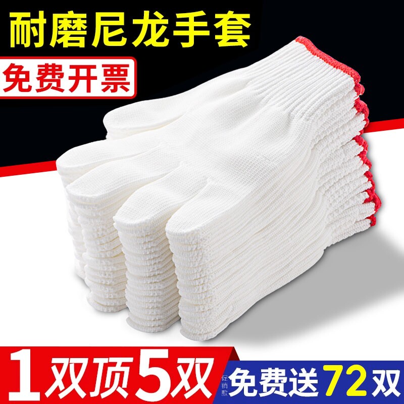 📚 尼龙手套劳保耐磨工作男工地工人干活棉纱纯棉修车加厚白棉线手套