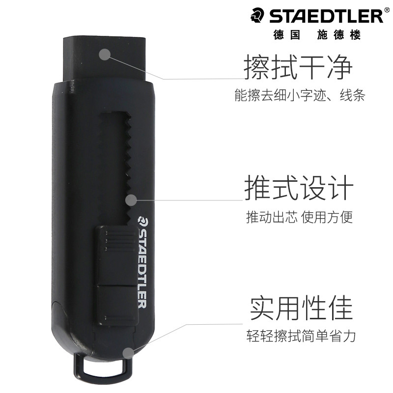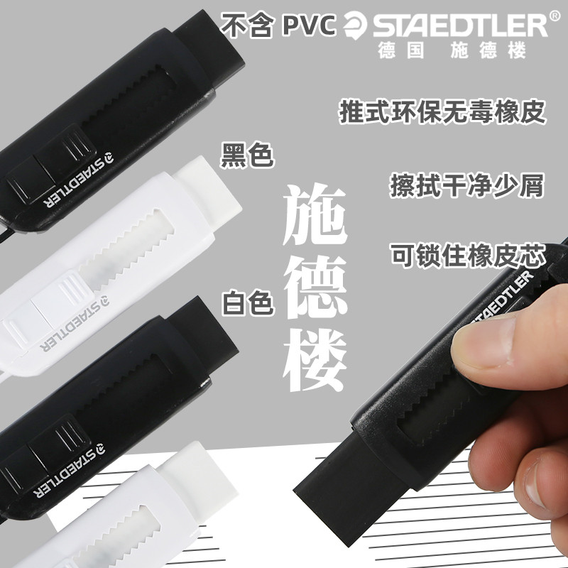 📚 STAEDTLER/施德楼推式橡皮525 PSI黑色白色学生书写办公无碎屑不留痕推拉式橡皮擦美术素描绘图设计擦除橡皮