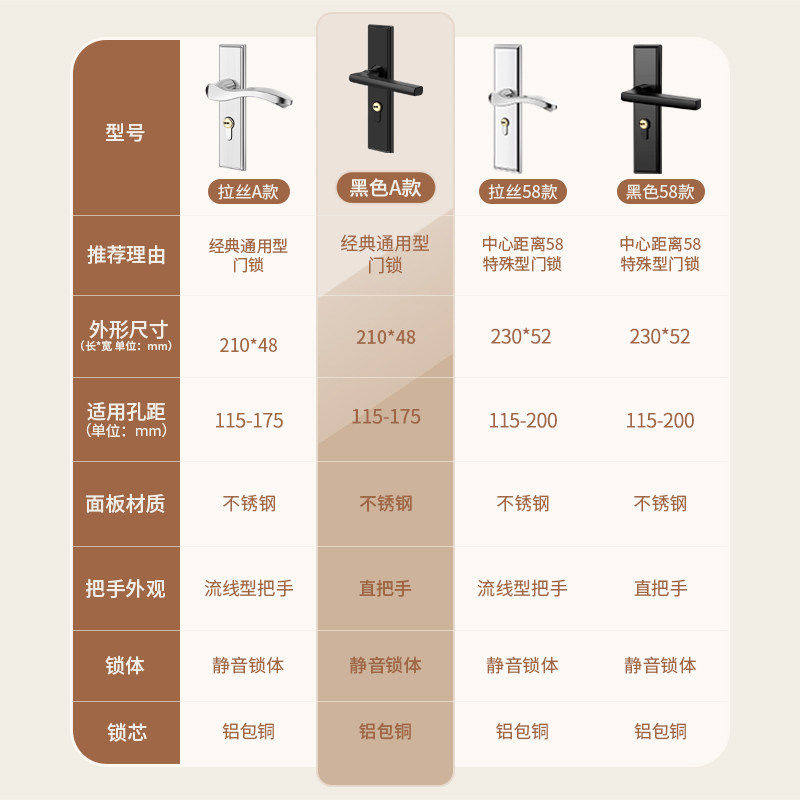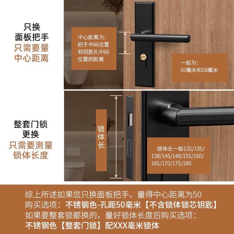 📚 卧室门锁家用通用型房间门木门室内全套锁具老式不锈钢门把手静音
