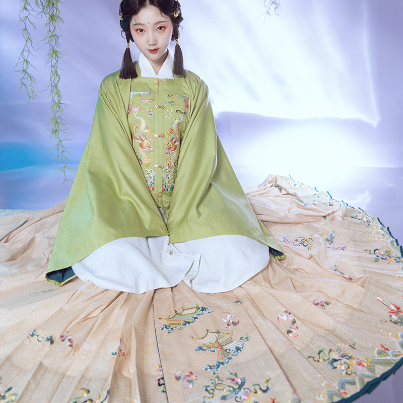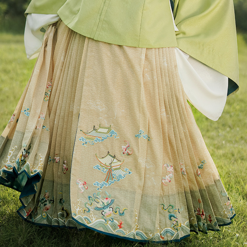 📚 瞳莞重工马面原创设计瑶台银阙绣花梯形褶正品马面裙汉服女百搭