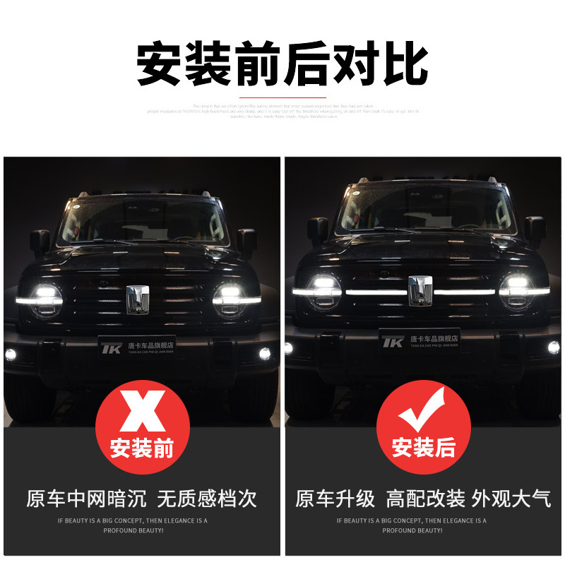 📚 坦克300中网灯前脸发光车标贯穿灯横条日行灯改装爆闪氛围灯饰件