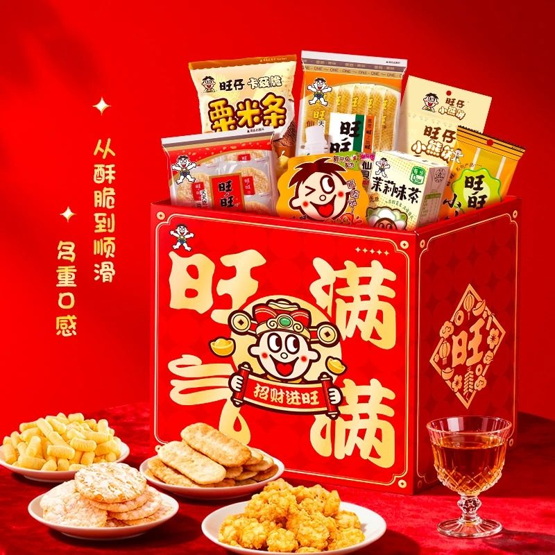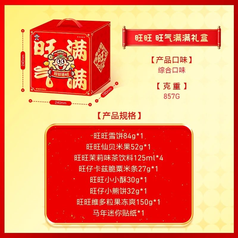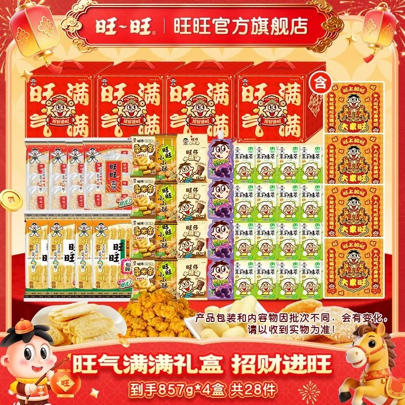 📚 旺旺旺气满满857g*4箱饮品休闲零食饼干年货送人礼盒到手4箱