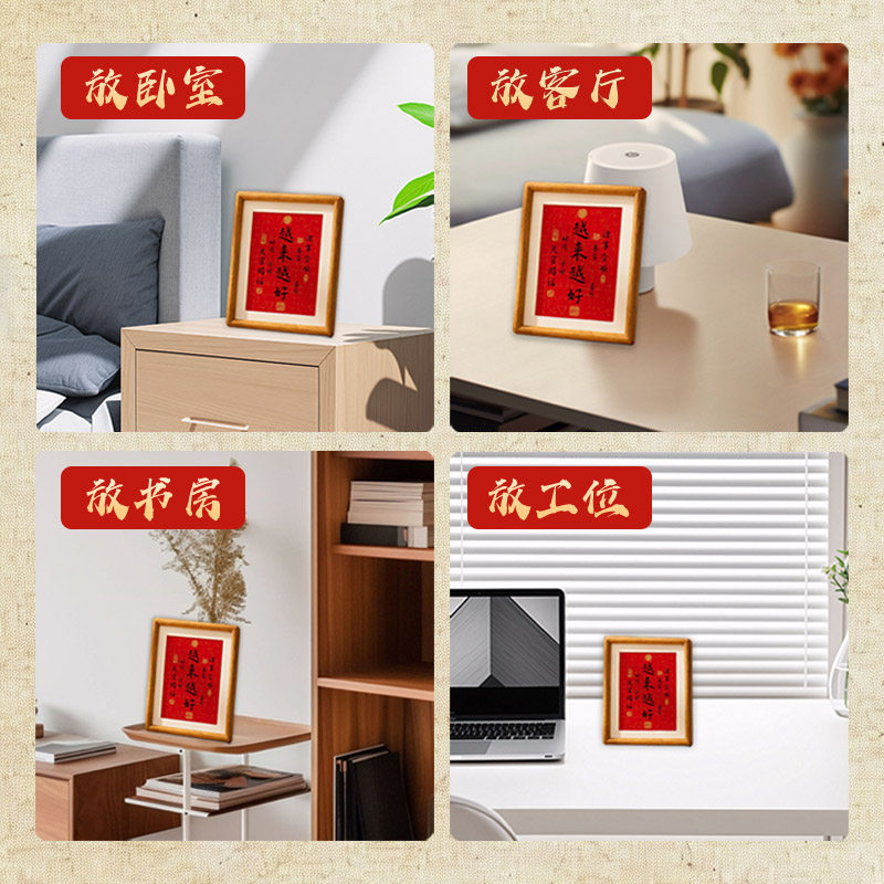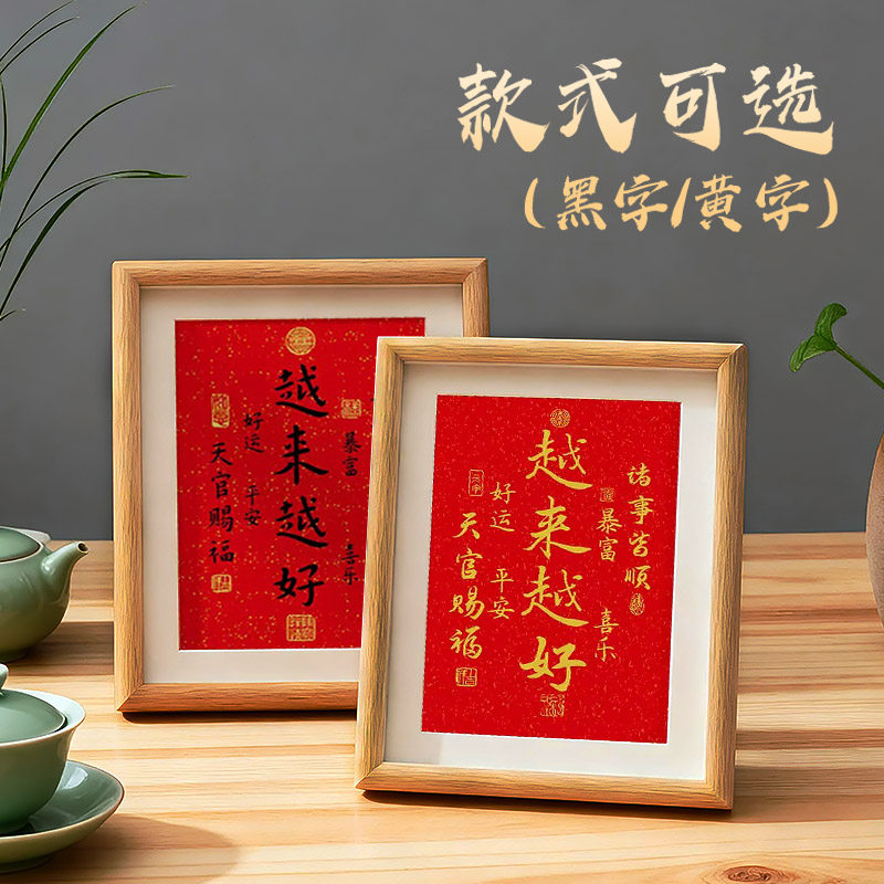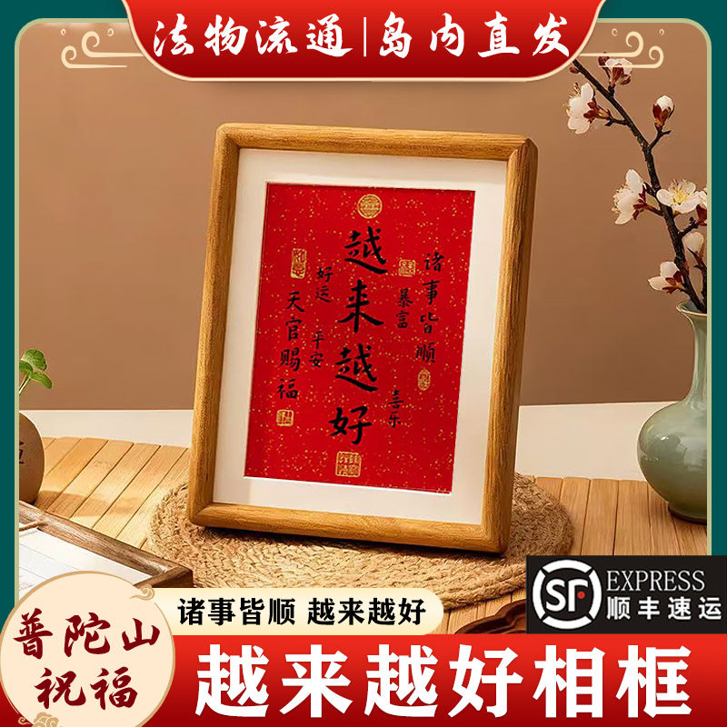 📚 普陀山越来越好书法玄关喜庆相框客厅摆台装饰画摆件字画祝福挂画