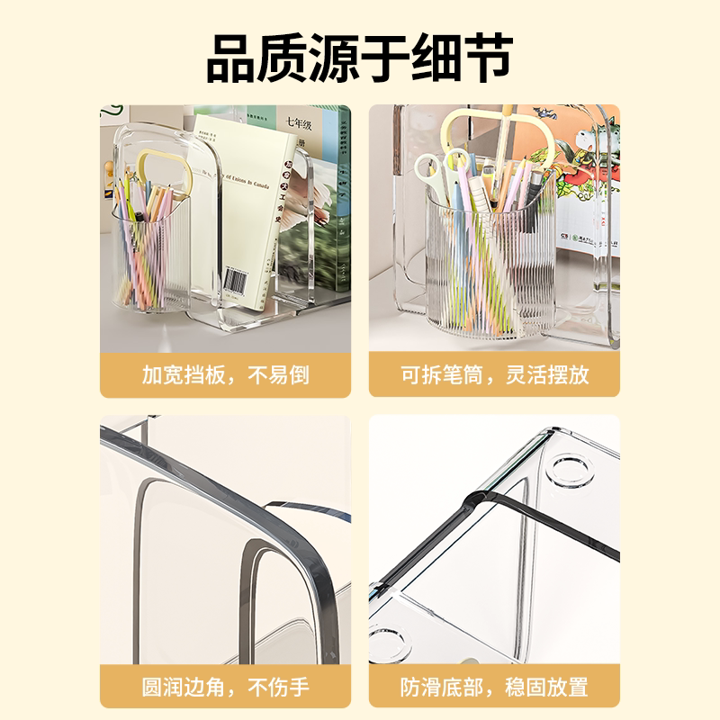 📚 透明书立架阅读架书夹桌上书架桌面固定书本收纳神器分隔板加厚学生课桌放书防倒书档板办公室文件整理置物架