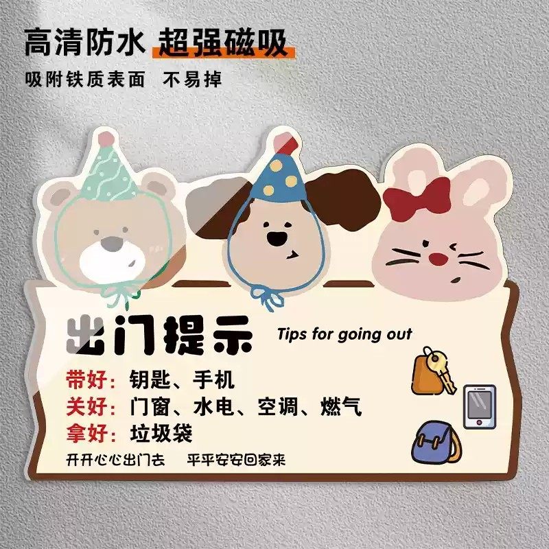 📚 出门提醒温馨提示牌关煤气提示牌家用要带手机钥匙贴纸创意可爱卡