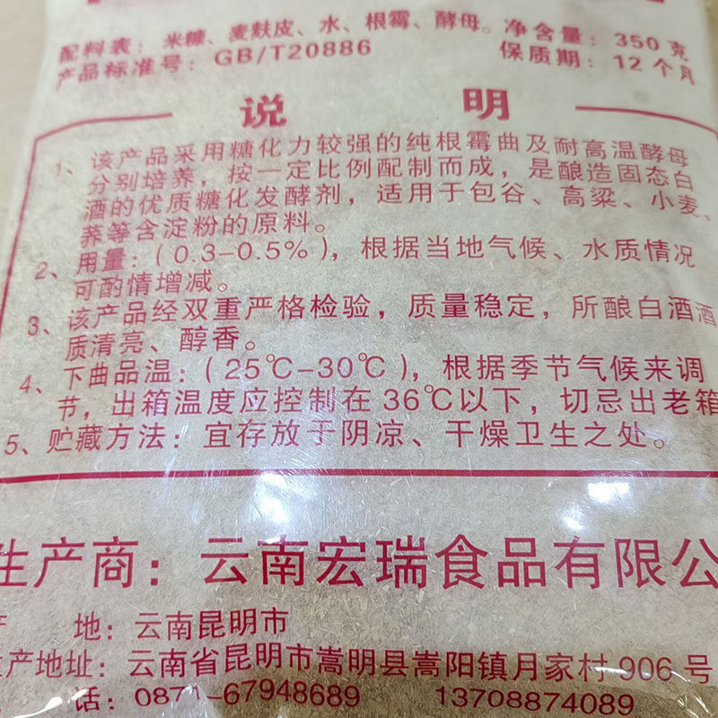 📚 云南昆民小菜园固态酿酒小曲酵母传统蒸馏白酒专用酒曲350gx20