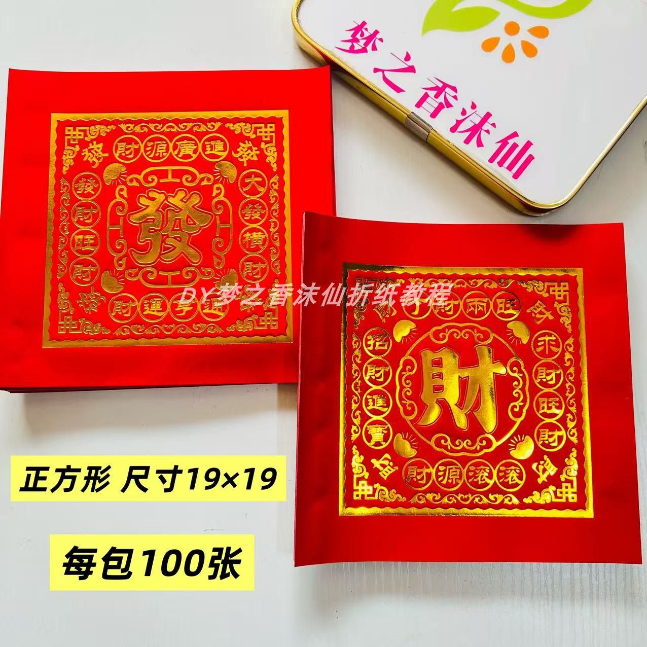 📚 新款单面红色发字财字金正方形烫金折纸尺寸19X19