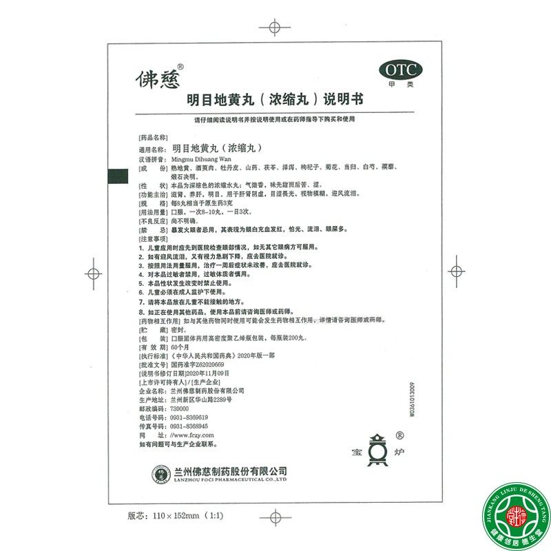 📚 包邮】佛慈 明目地黄丸 200丸视物模糊迎风流泪肝肾阴虚目涩畏光