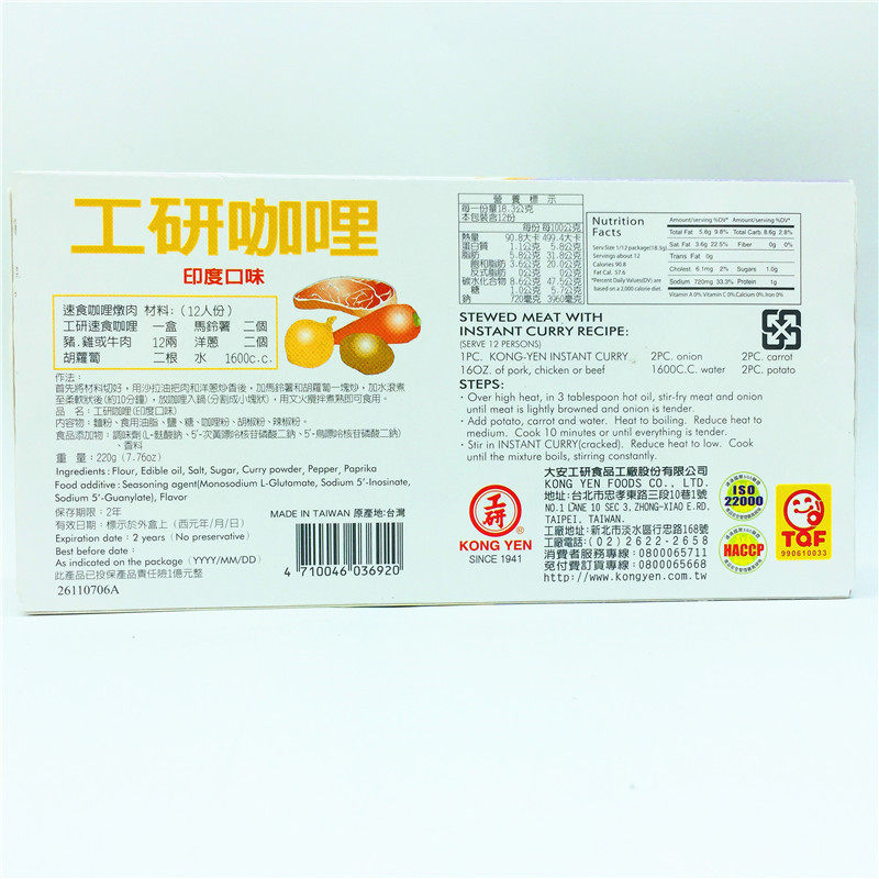 📚 整件包邮 正宗台湾进口调味酱工研咖喱块速食即食咖喱料印度味