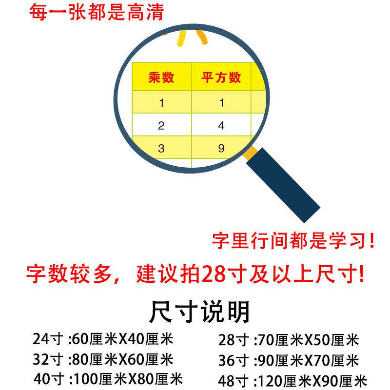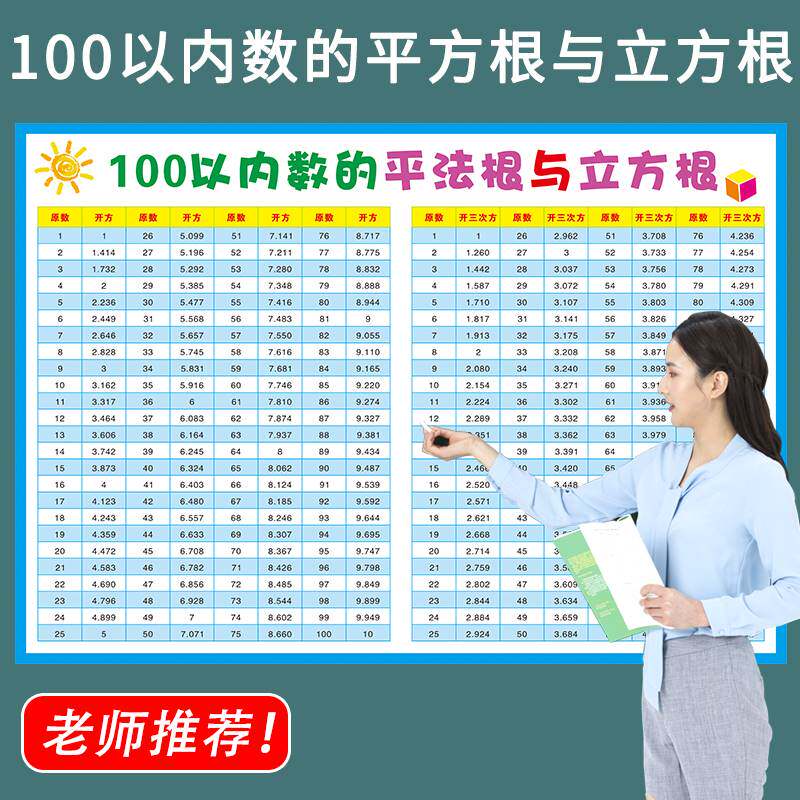📚 100以内数的平方根表立方根数学平方立方表 小学常用数的互化墙贴
