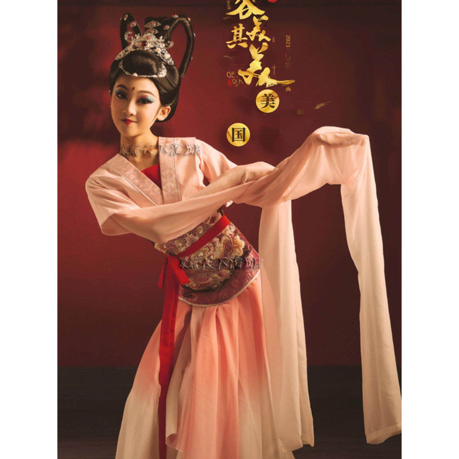 📚 儿童古典舞水袖舞蹈服少儿女童汉唐舞演出服中国风民族惊鸿舞甩袖