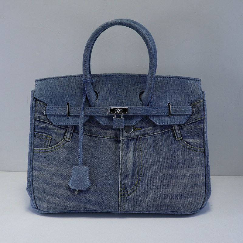 📚 小众设计潮牌恶搞牛仔裤兜铂金包牛仔布手提包时尚百搭单肩斜挎包