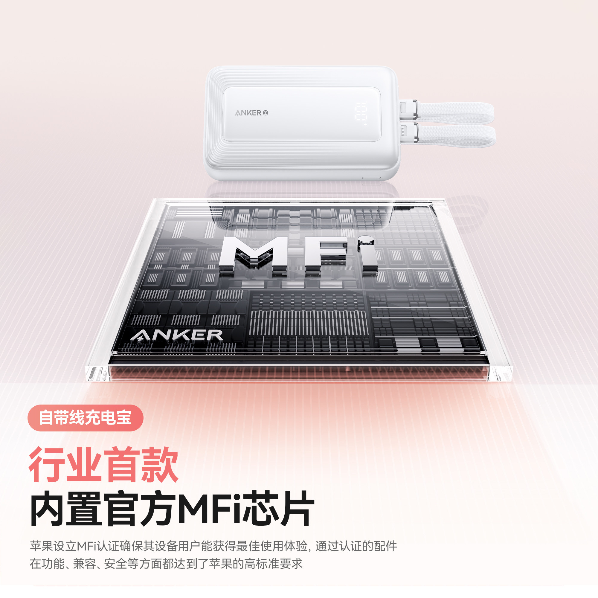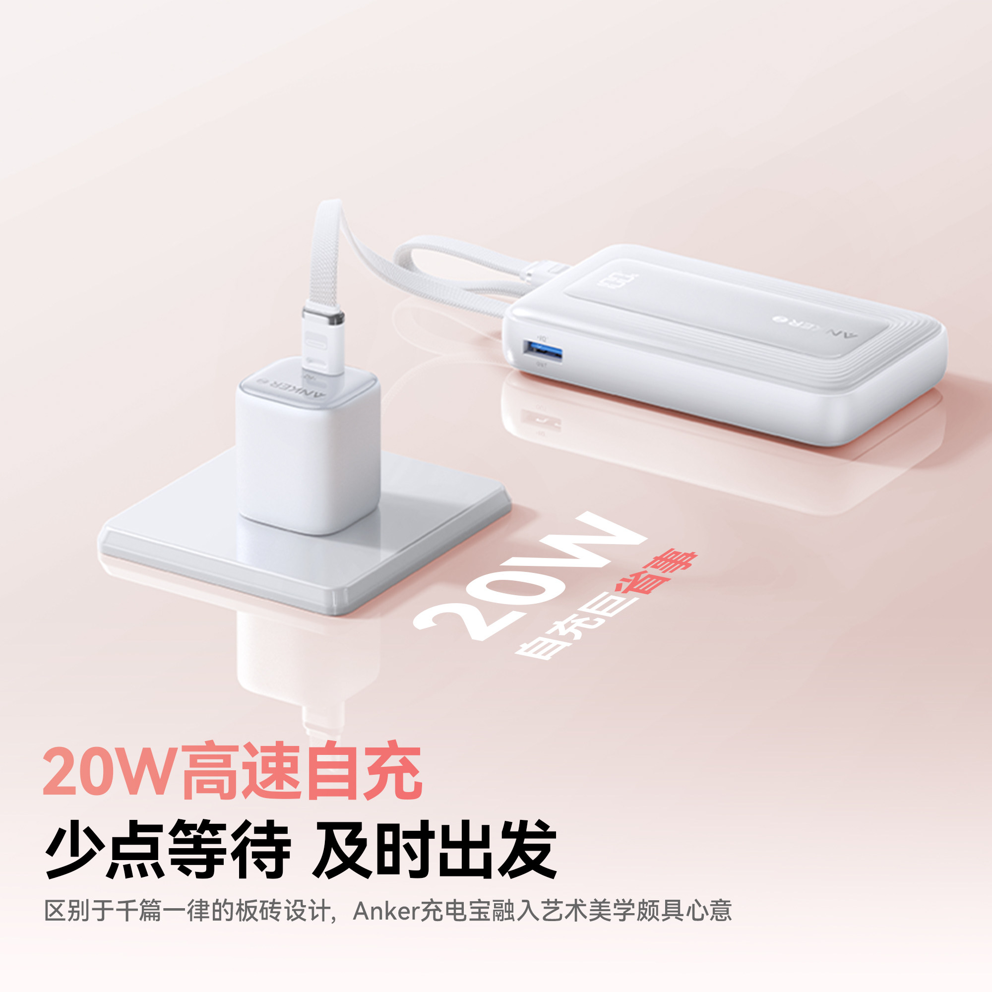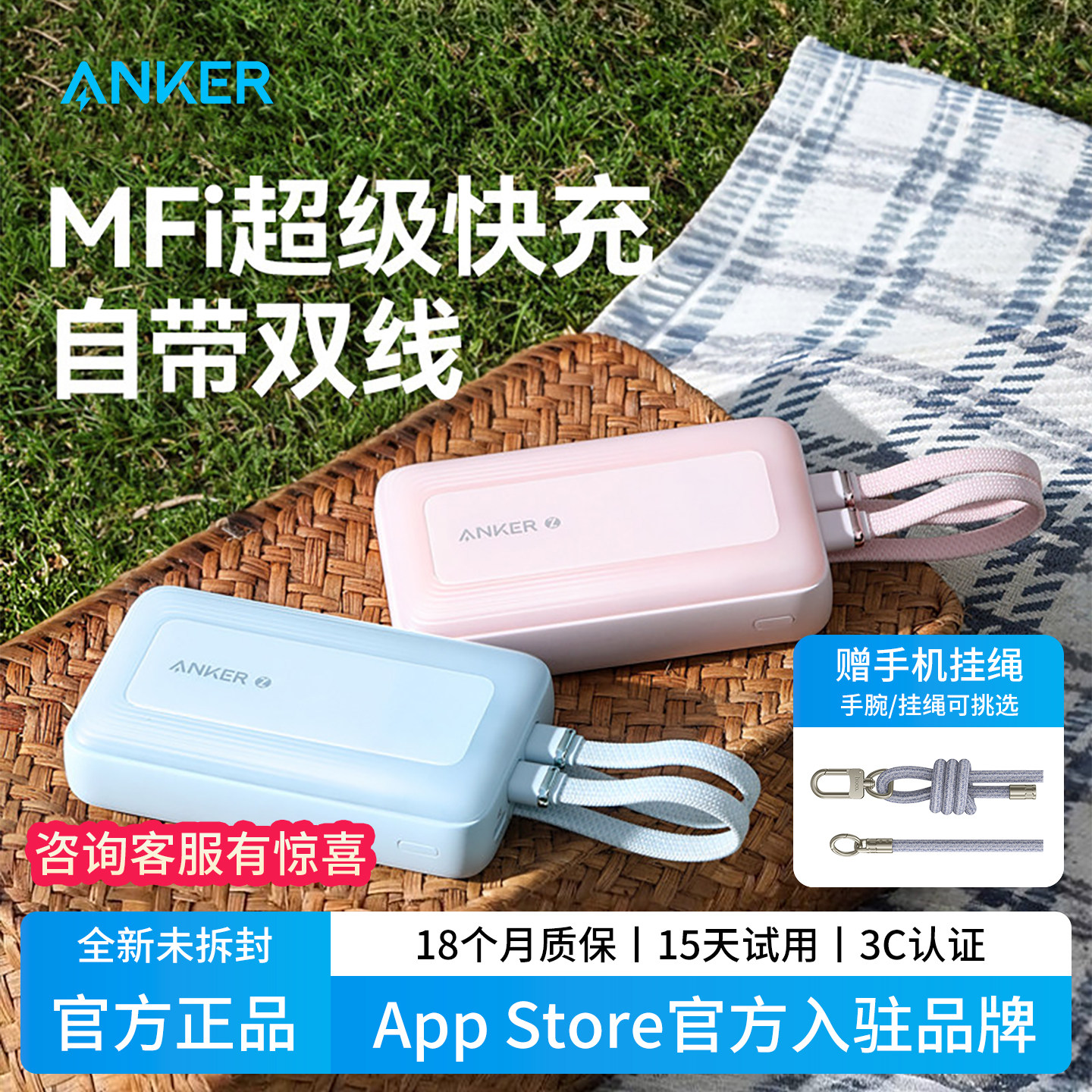 📚 【新国标3C认证】Anker安克MFI认证充电宝自带双线30W快充20000毫安大容量移动电源便携适用苹果17超薄16小巧