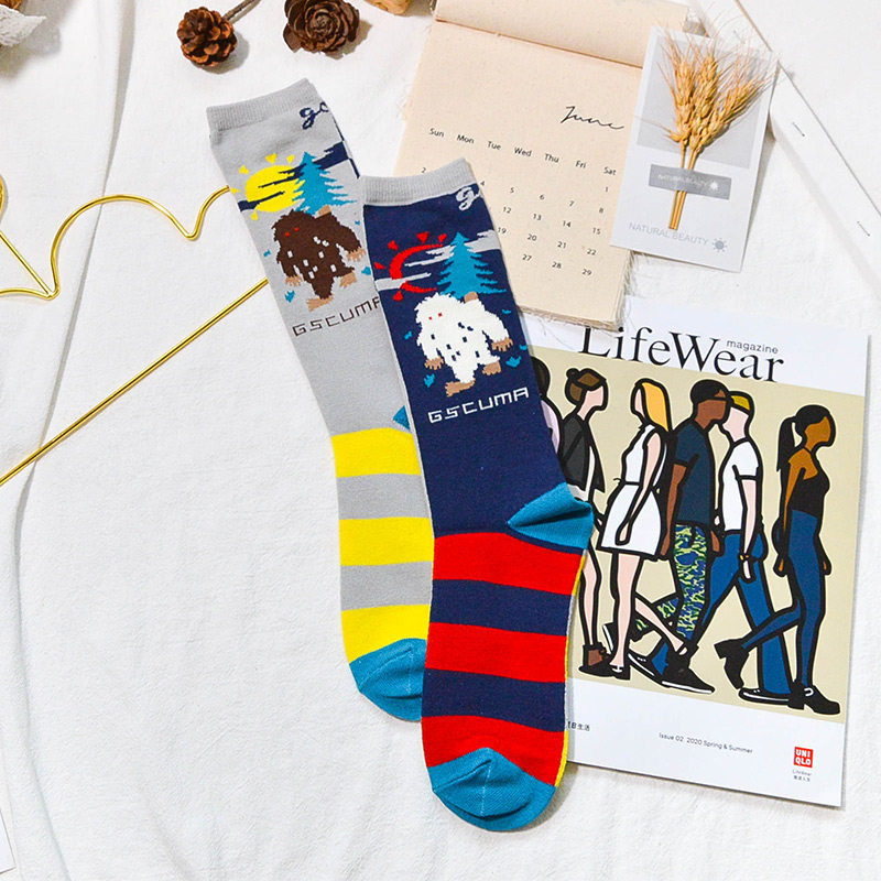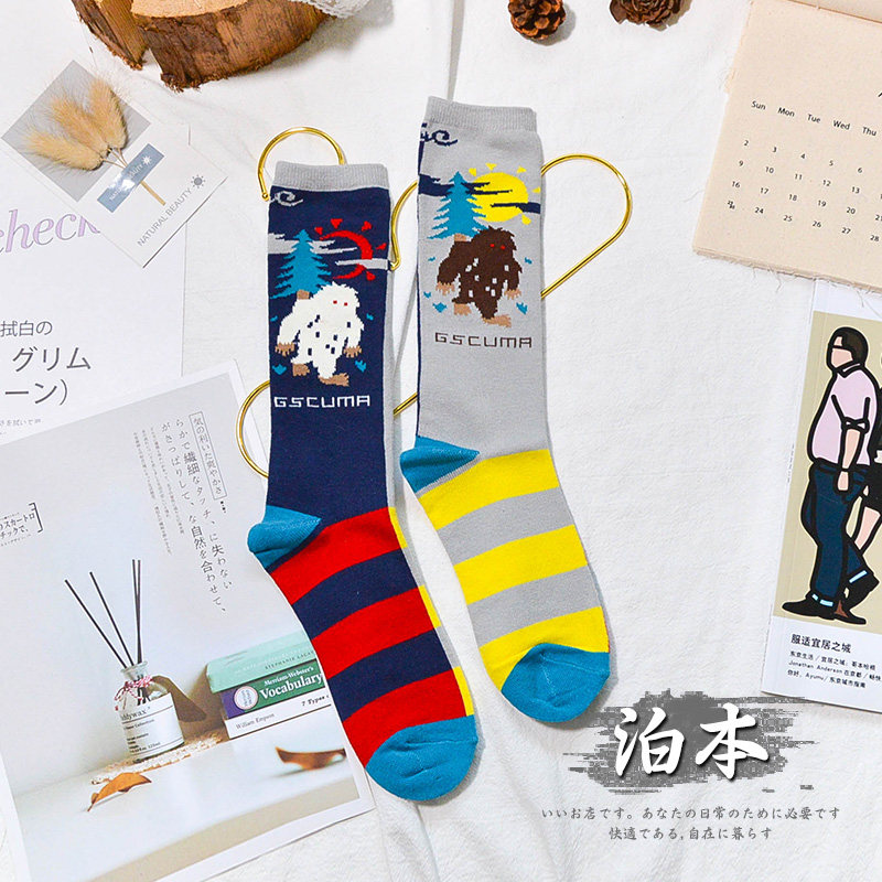 📚 不对称女袜纯棉中高筒AB鸳鸯 街拍潮袜日本原单 欧洲站女士学生袜