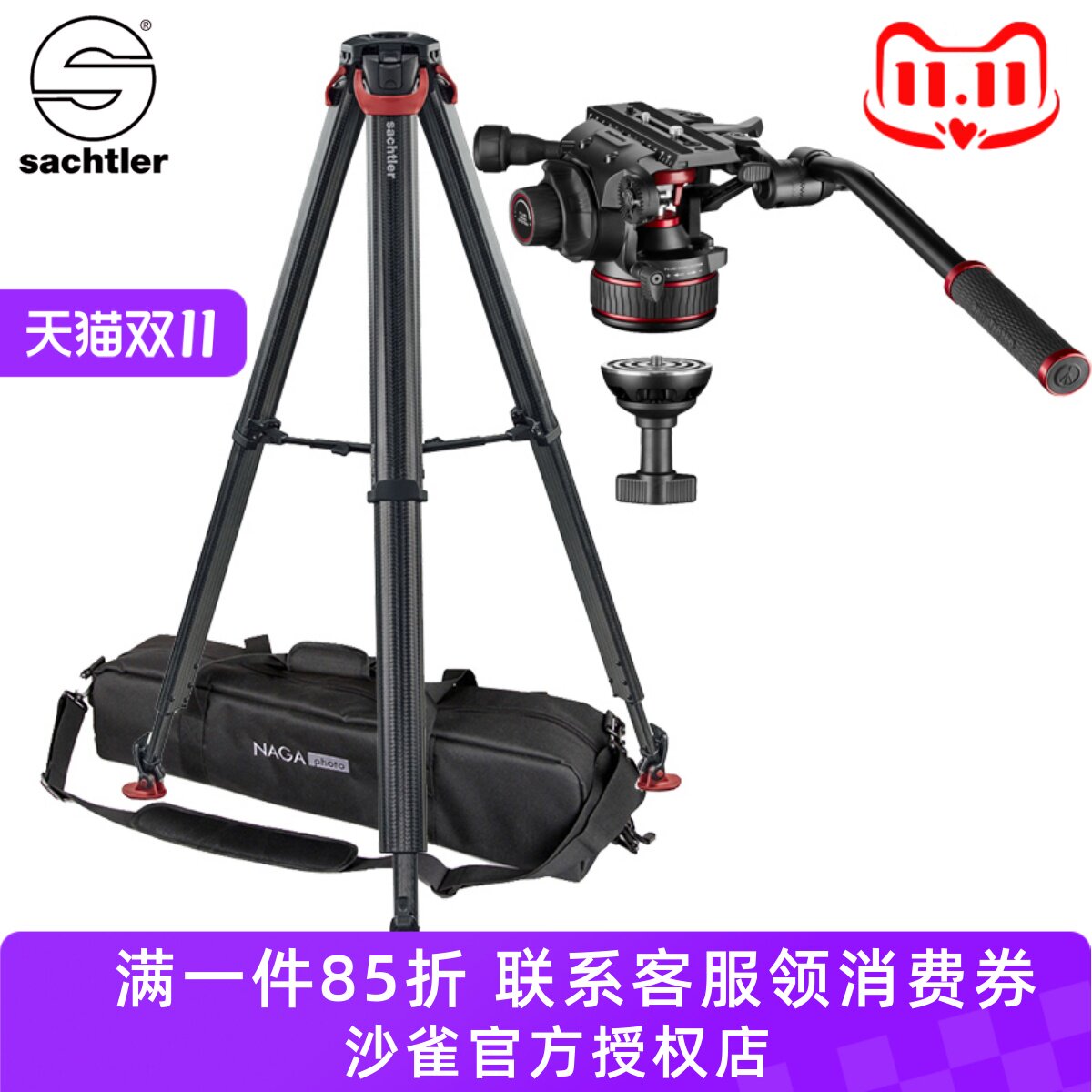 📚 萨拿沙雀Sachtler flowtech 75碳纤维三脚架+曼富图MVH612AH云台