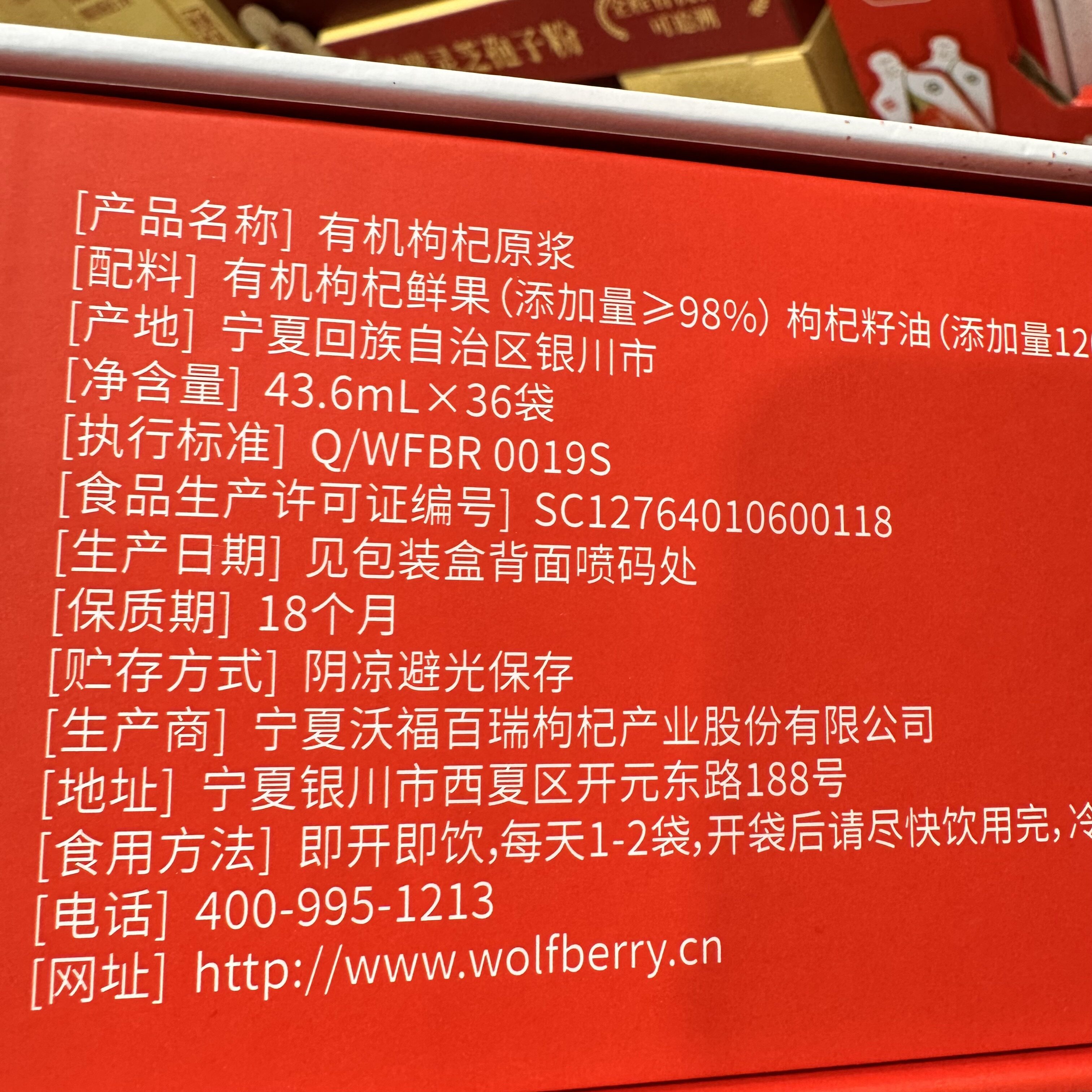 📚 麦德龙CostcoSam会员超市代购山姆礼盒沃福百瑞有机枸杞原浆汁液