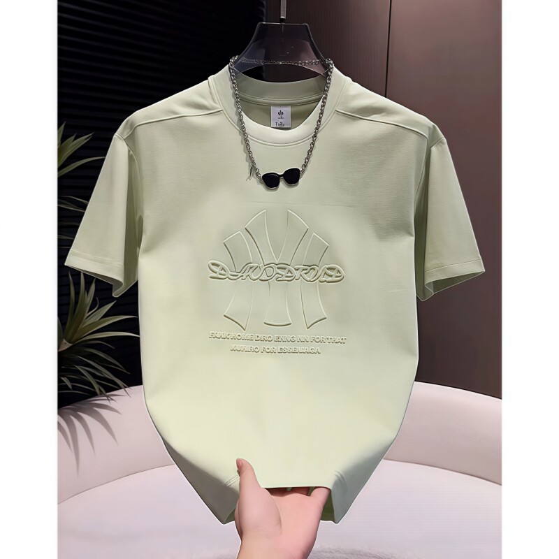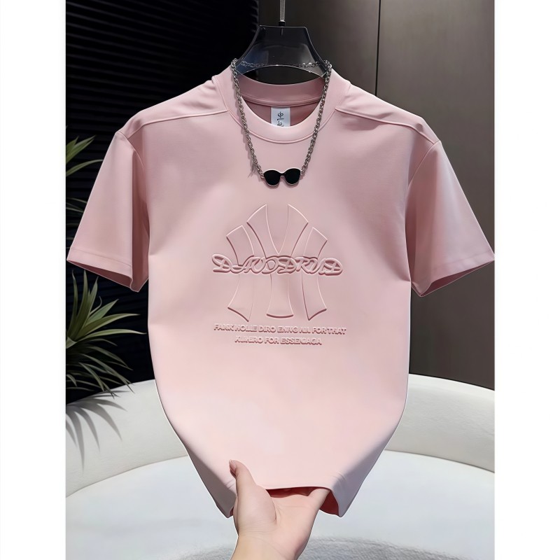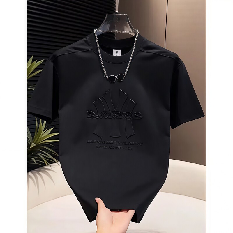 📚 2026夏季新款设计感短袖T恤男冰丝轻奢百搭爆款凹凸钢印体恤半袖