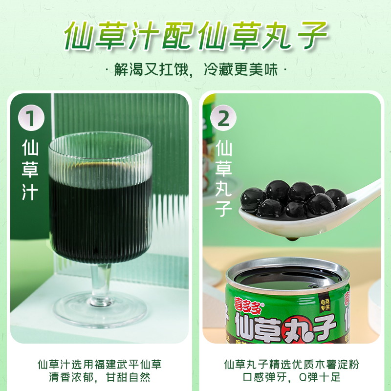📚 喜多多Q弹仙草丸子夏季植物凉茶饮料罐头仙草汁烧仙草去火