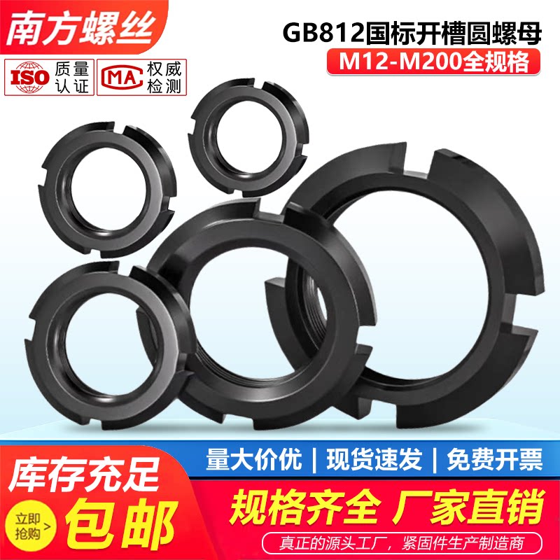 📚 GB812国标圆螺母开槽锁紧螺母止退四槽元螺母M12M16M25M30M50-200