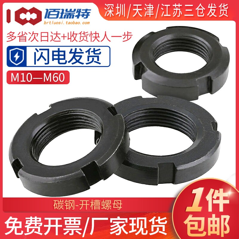 📚 圆螺母锁定M10M12M14M16M18M20M22M25/M60开槽止退四槽螺丝帽锁紧