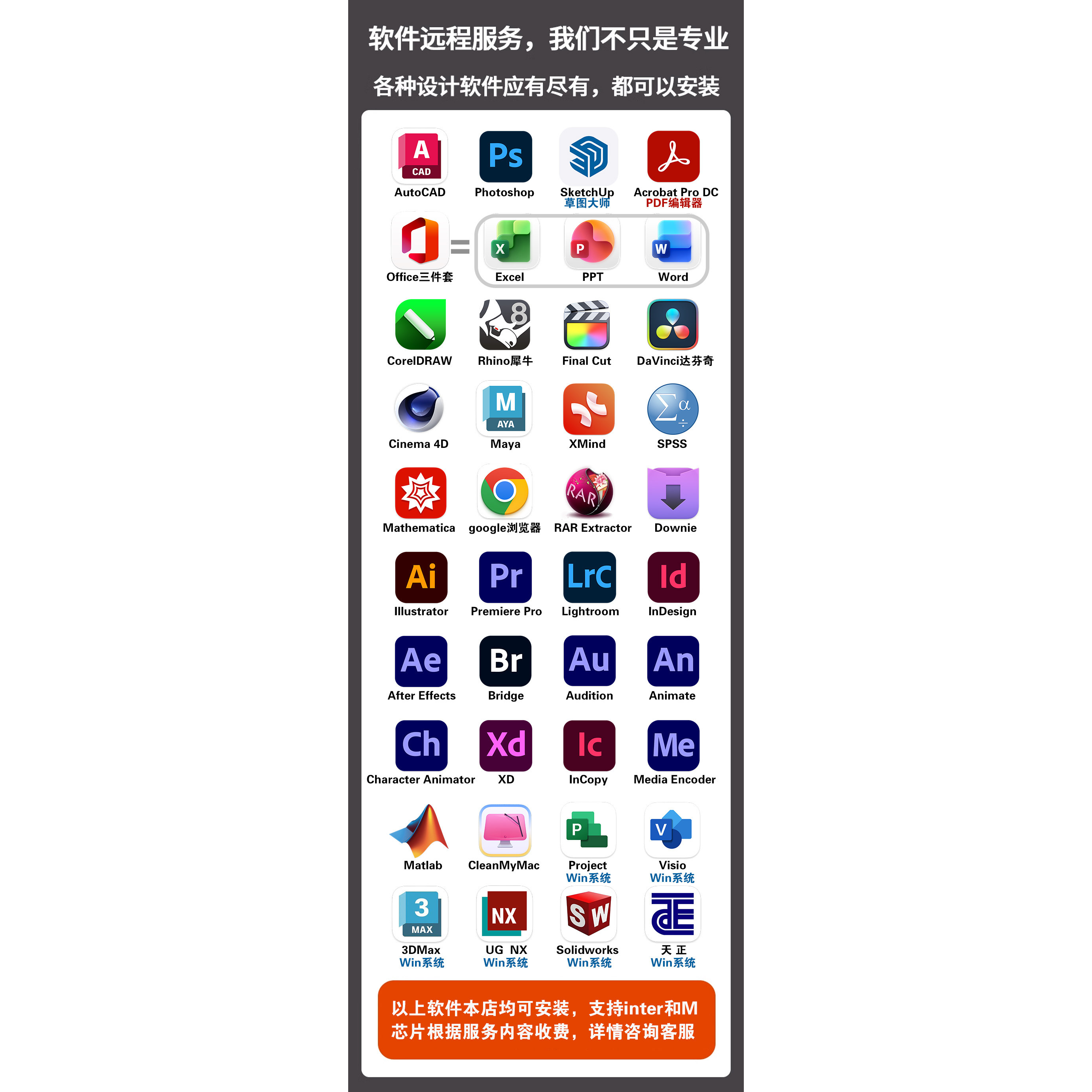 📚 Mac苹果电脑2D3D画图设计办公软件专业远程安装音频视频剪辑M1-M5