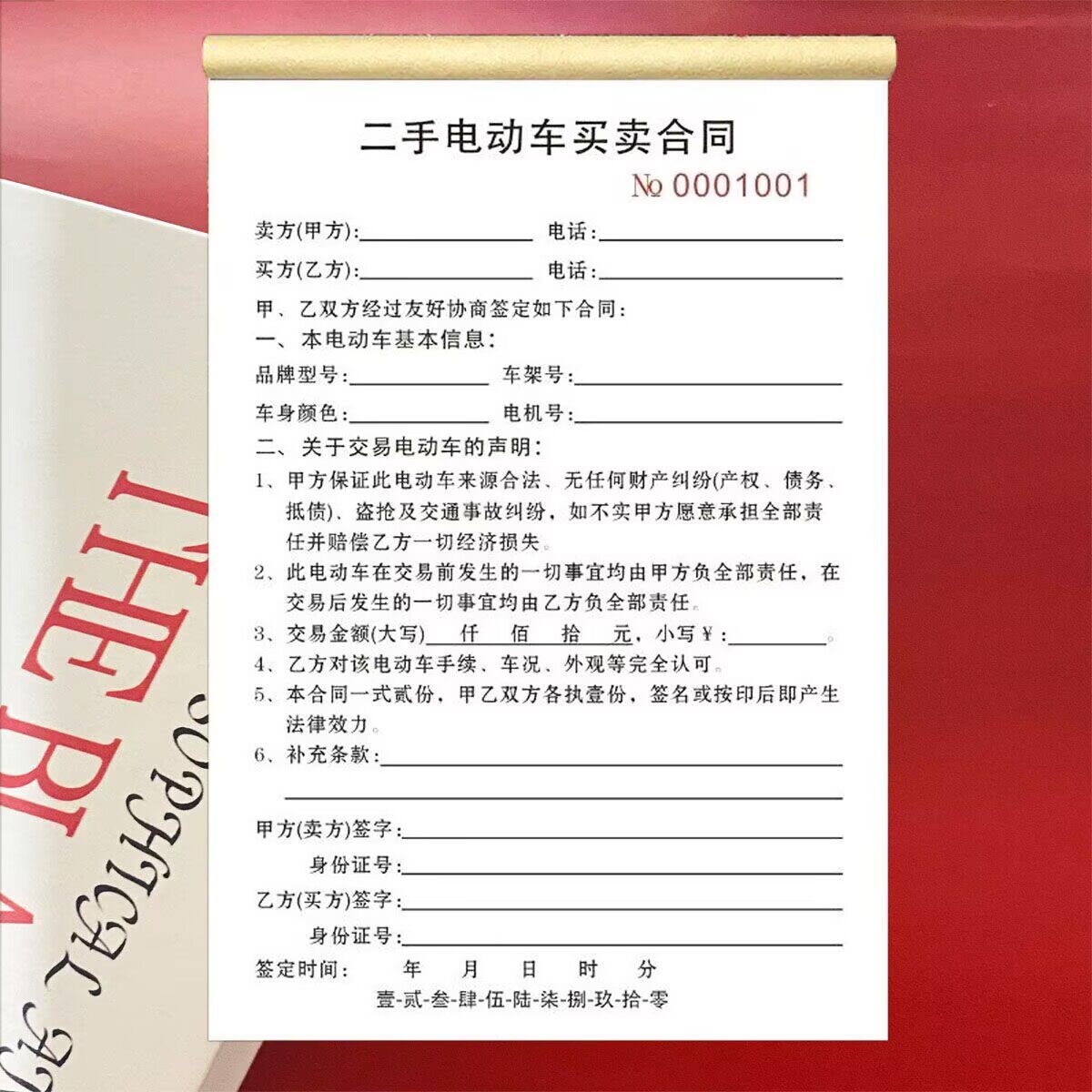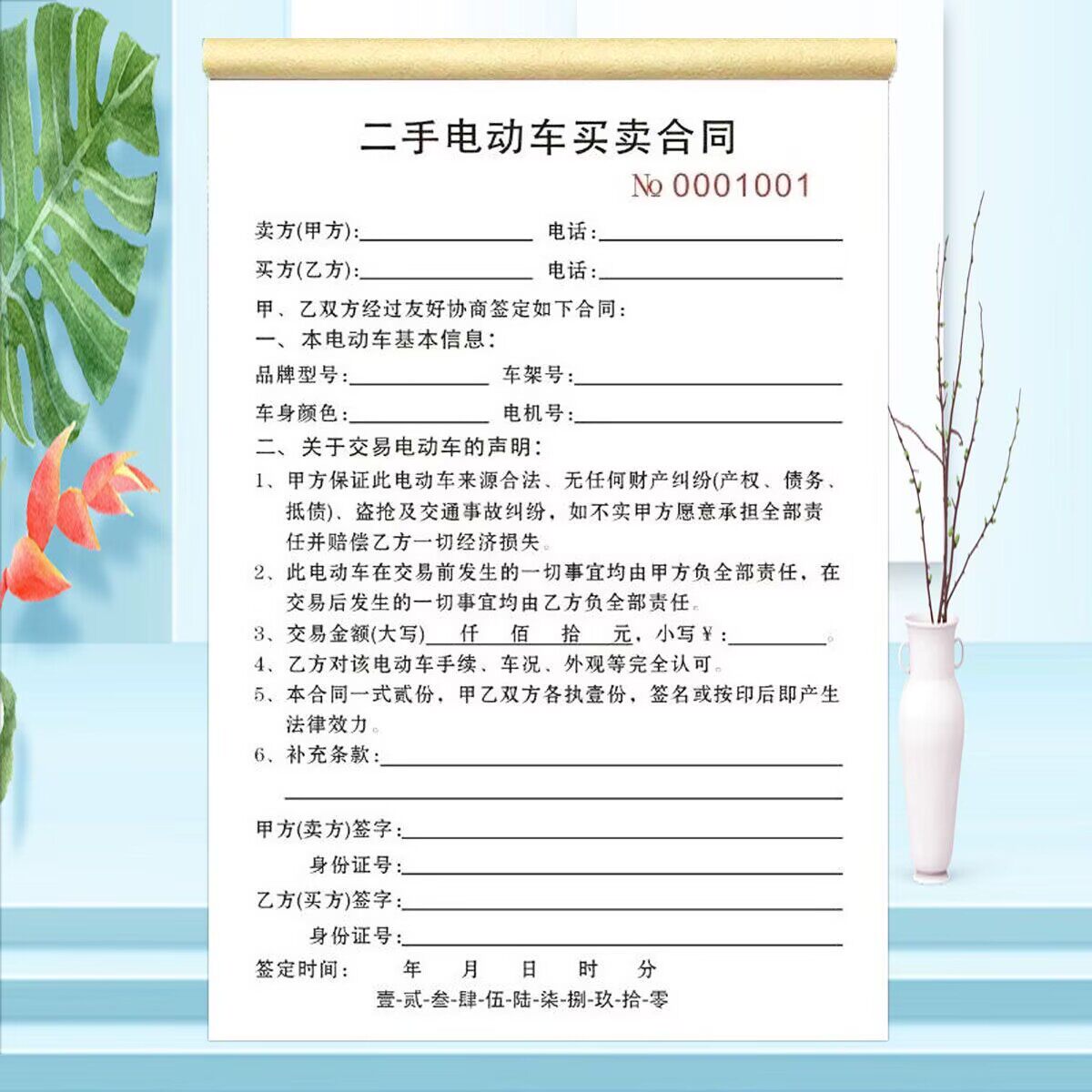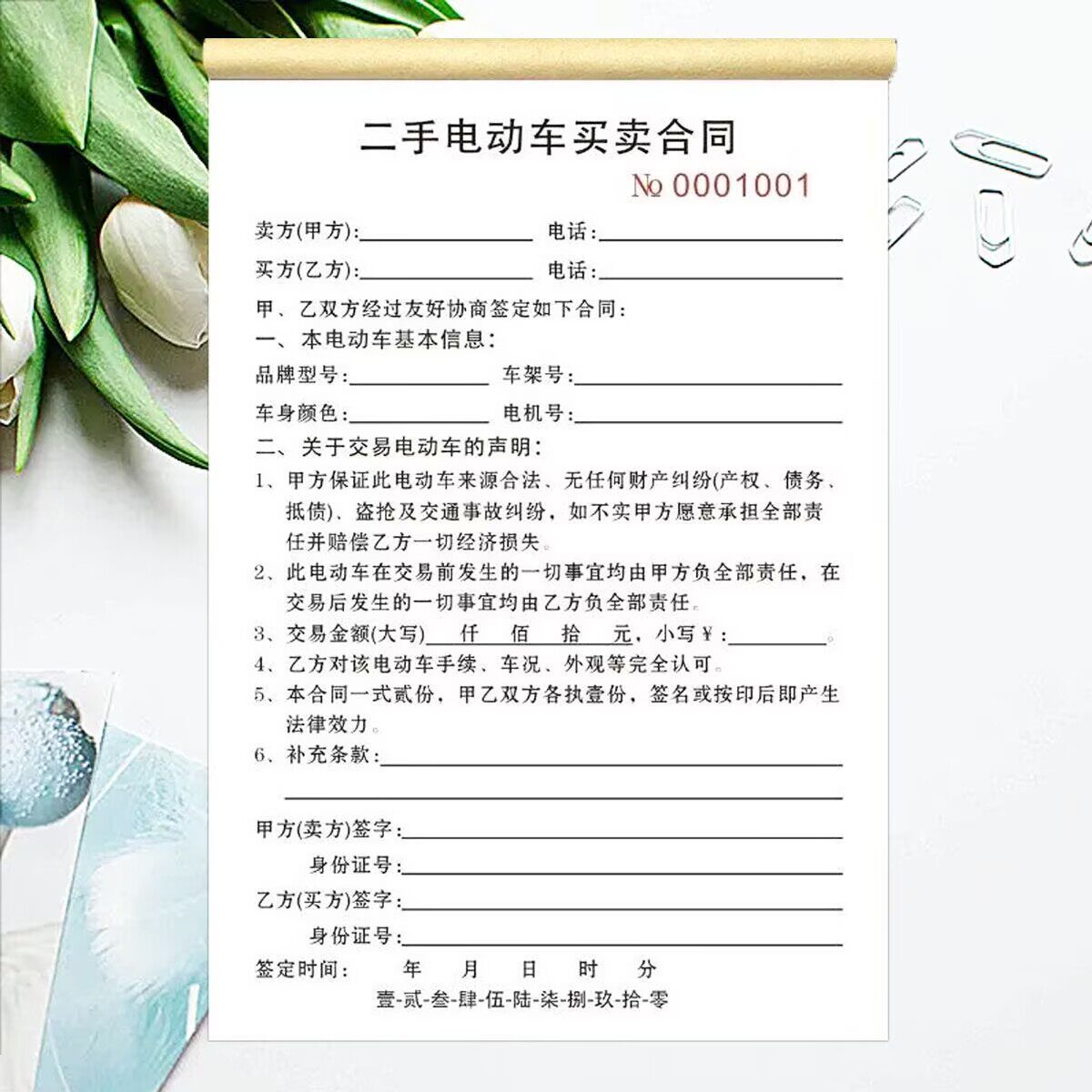 📚 二手电动车买卖合同二联转让协议书电动车自新车游园车租赁出租本