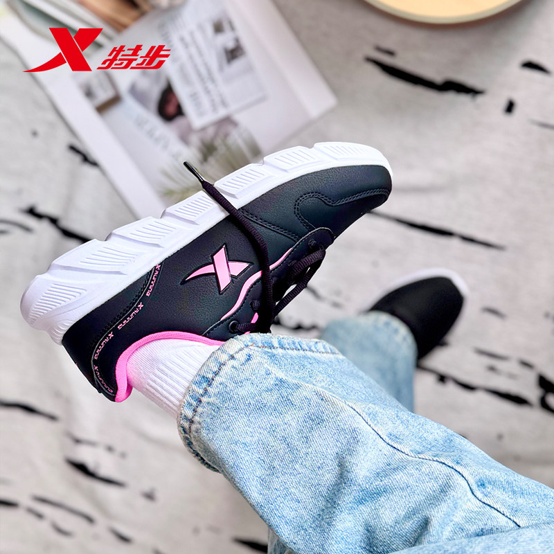 📚 特步跑步鞋女款冬季初中生皮面休闲运动鞋官方旗舰正品黑色跑鞋女