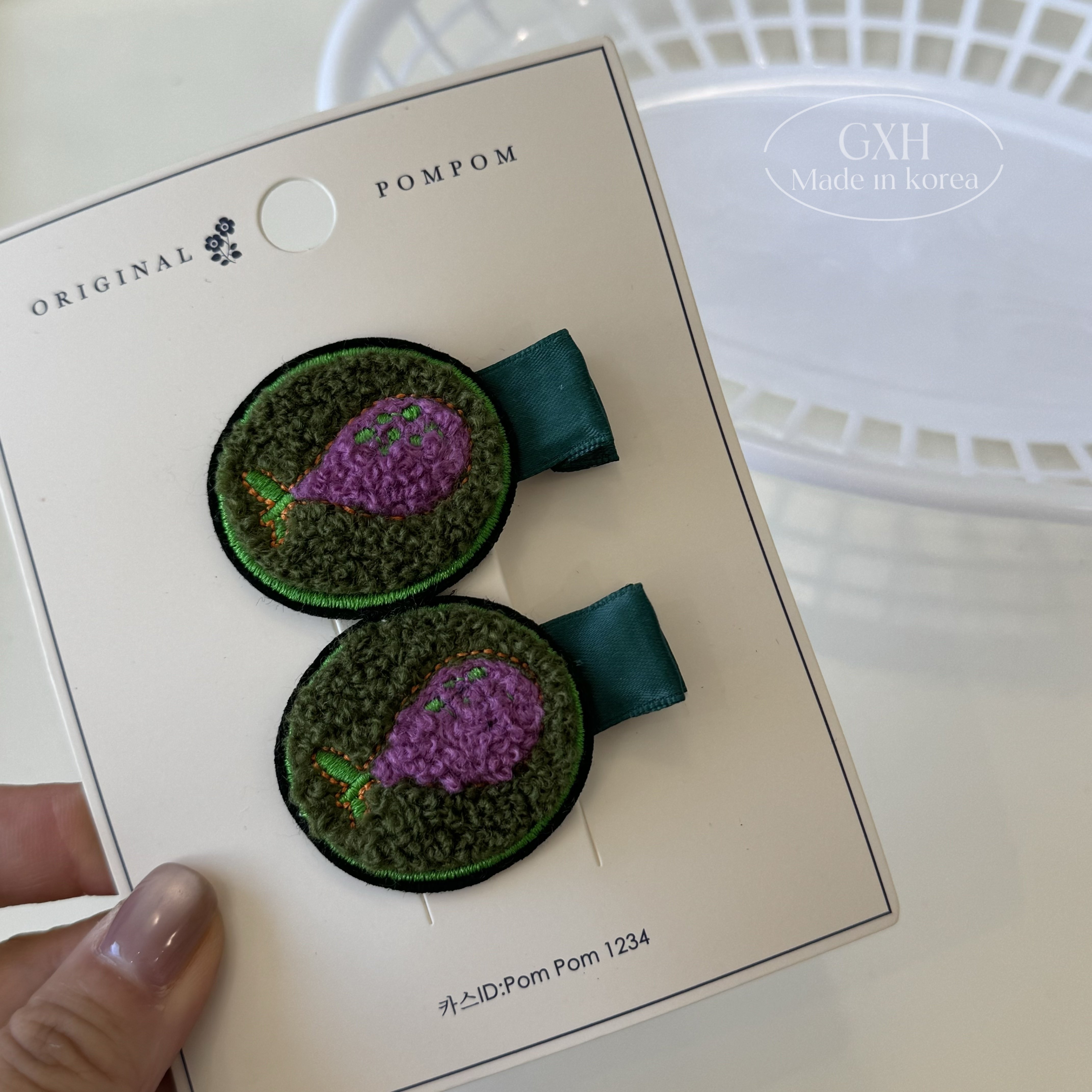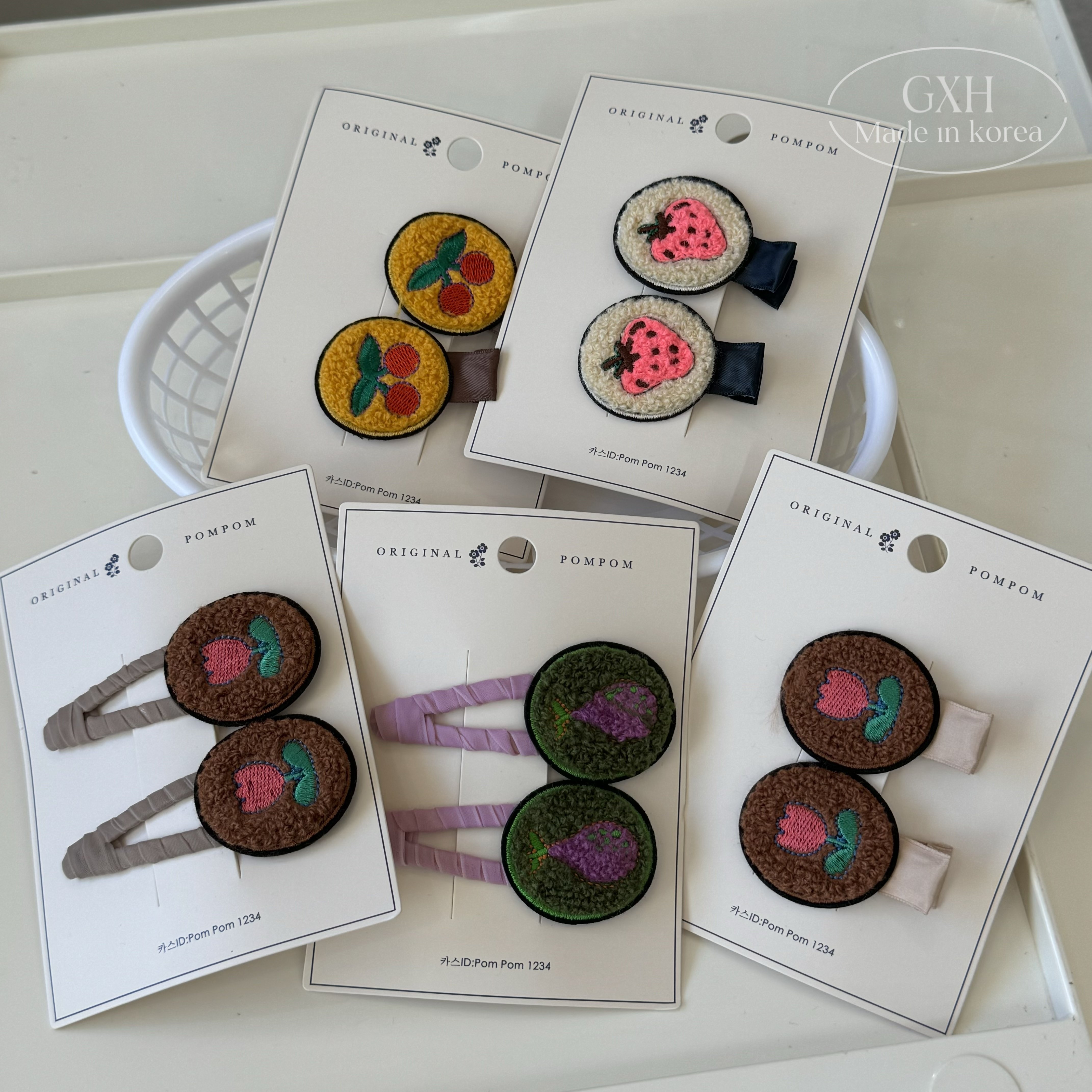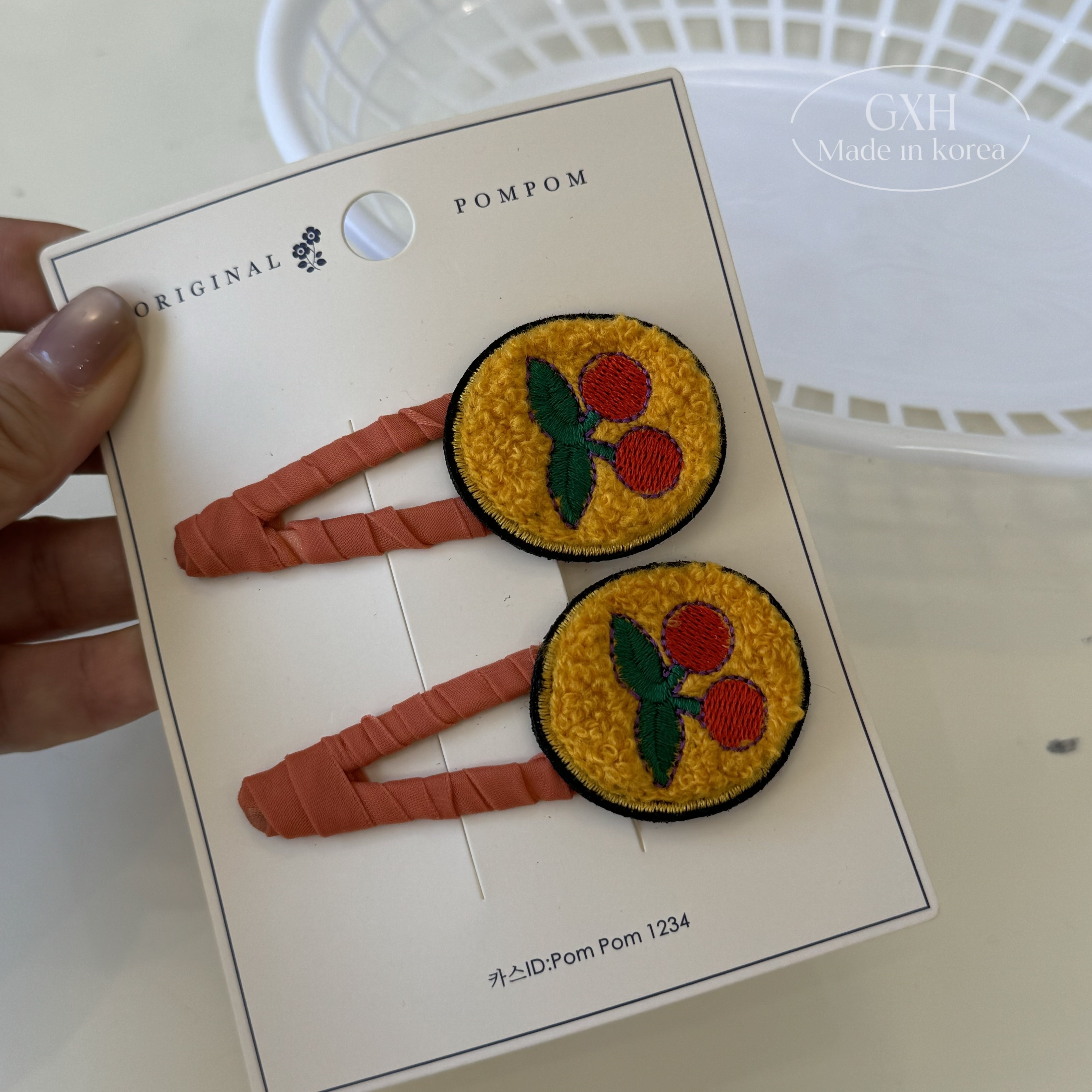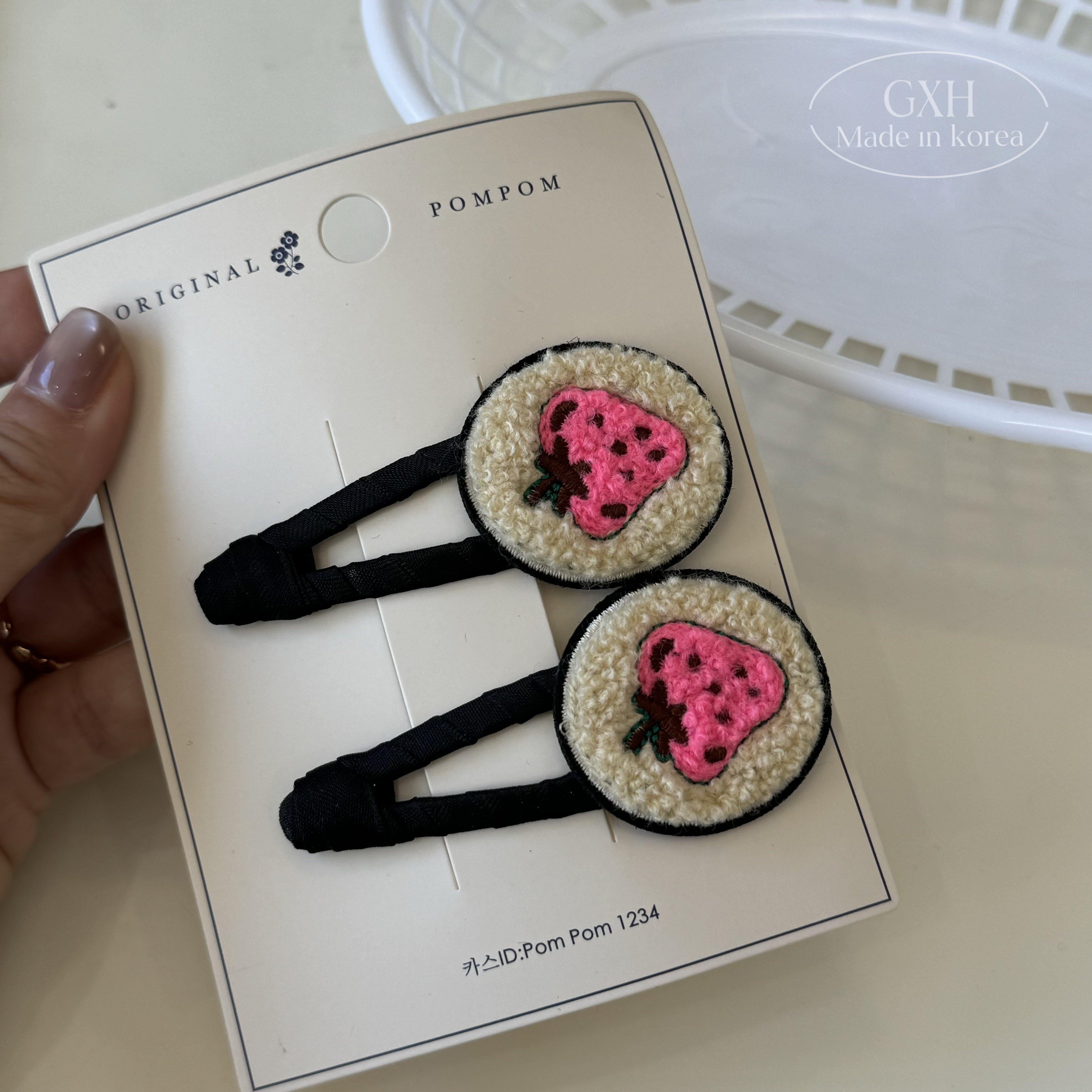 📚 韩国进口pompom女童发饰毛毡椭圆鸭嘴夹草莓花朵发夹贴布樱桃对夹