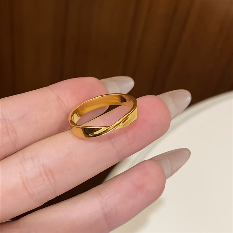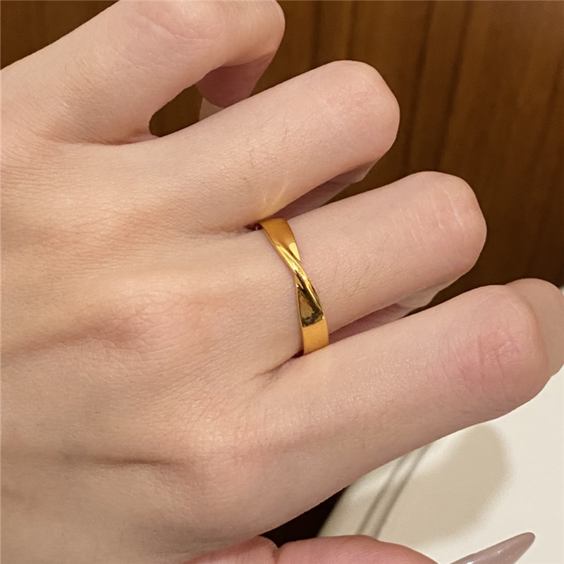 📚 古法沙金抛光亮面实心4mm莫比乌斯戒指情侣对戒男女款素圈食指戒
