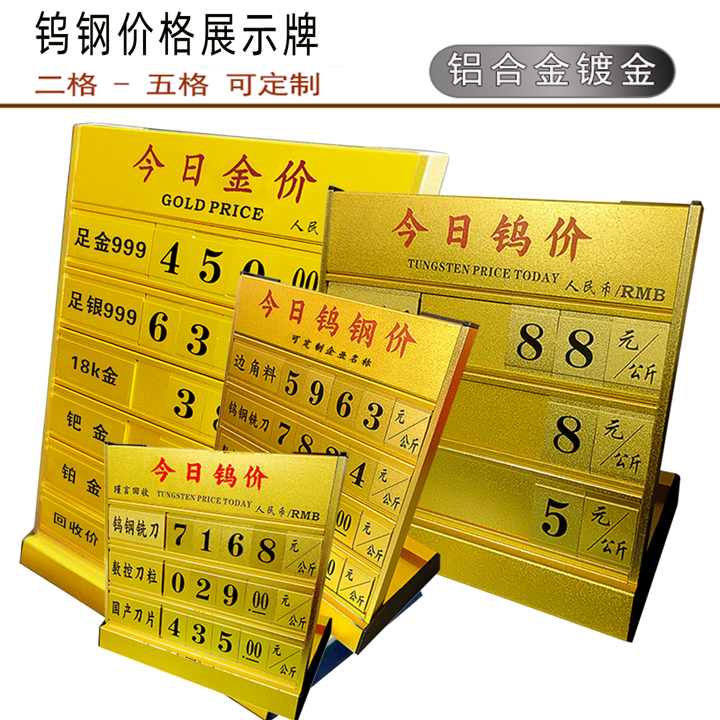 📚 定制铝合金今日钨钢价格黄金白废钨锡渣价格展示牌柜台摆件今日钨价价格牌钢价名烟名酒金属钨钼钢价格展示牌