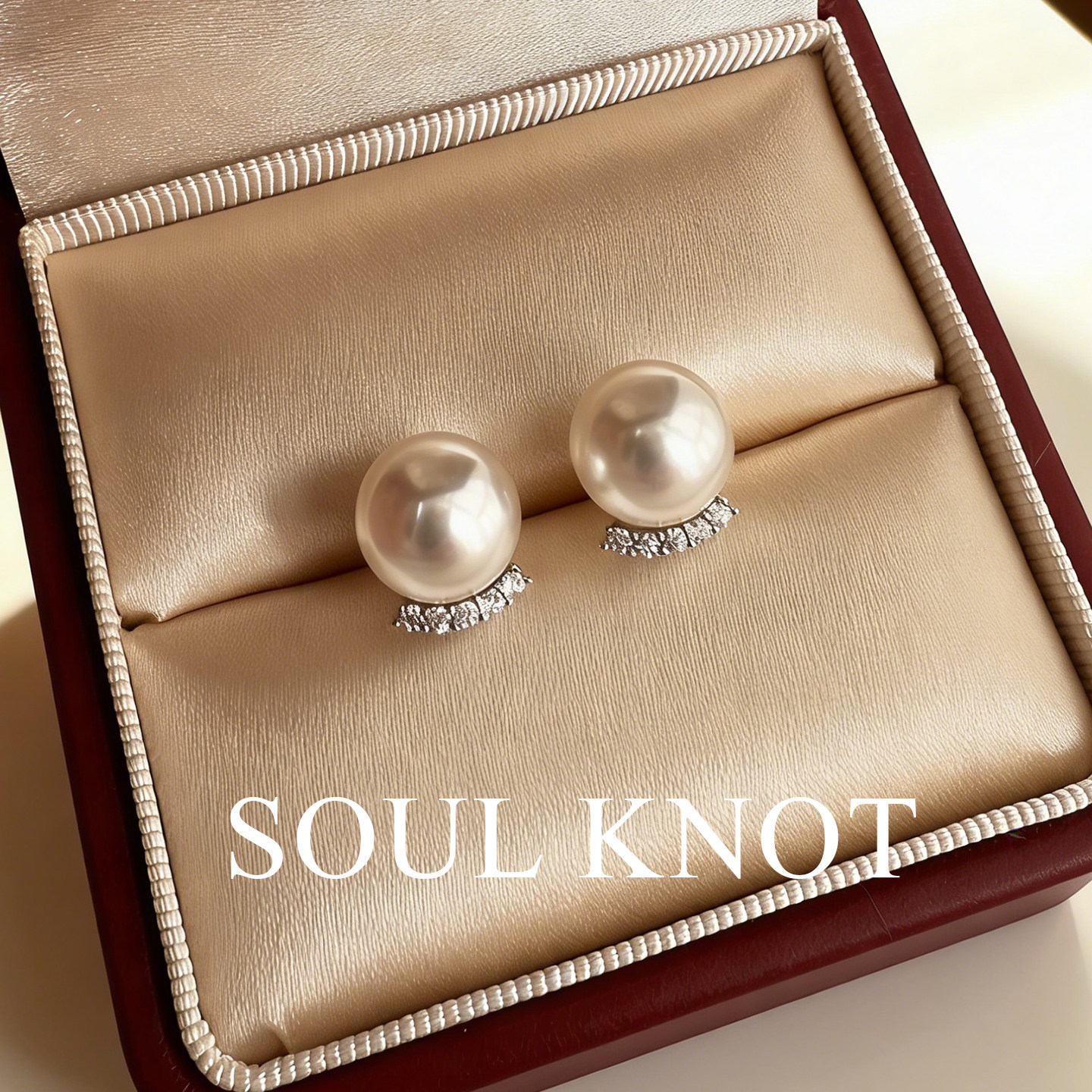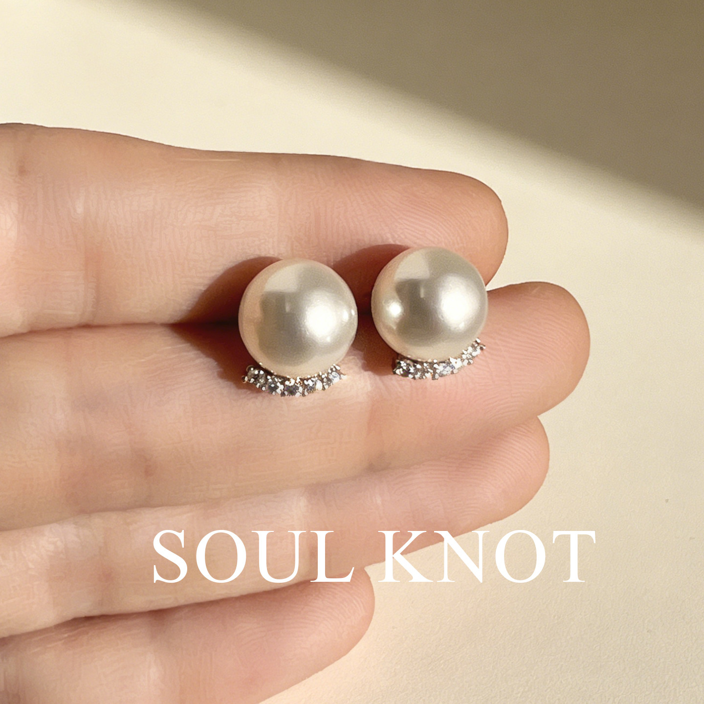 📚 SOUL KNOT正圆极强光爆闪睫毛款珍珠耳钉镶钻轻奢小众高级感耳饰