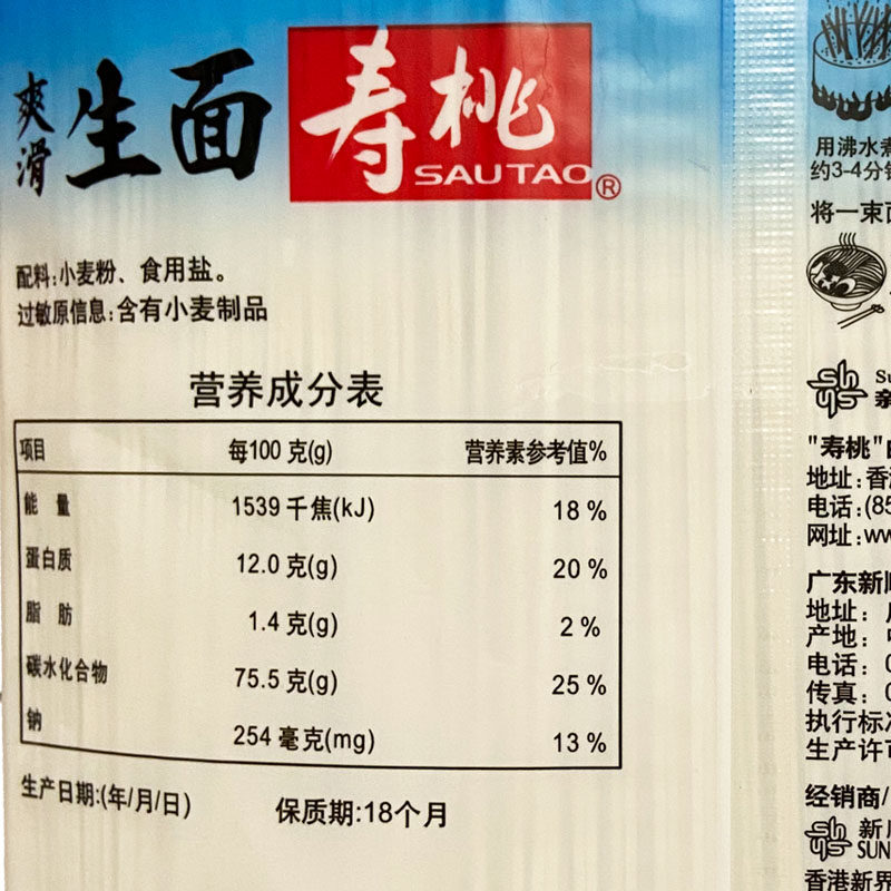 📚 寿桃牌非油炸爽滑生面 挂面 捞面 拌面 家庭式汤面 早餐面1.36kg