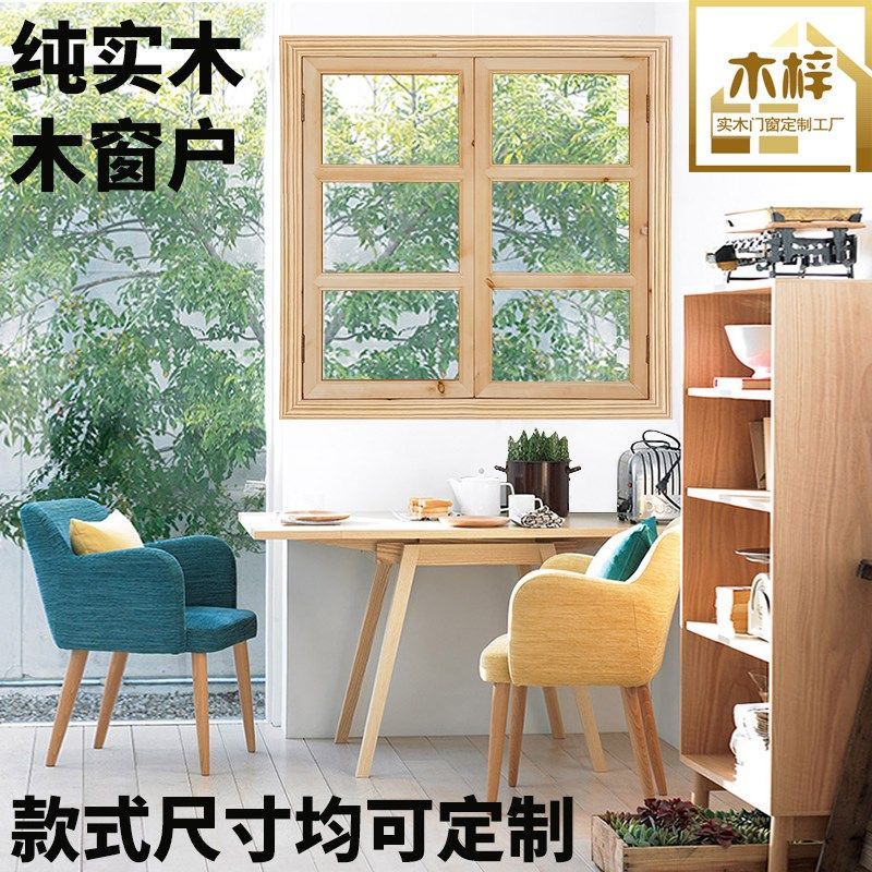 📚 定制中式老式松木原木窗户实木百叶窗仿古门窗实木花格窗套玻璃窗
