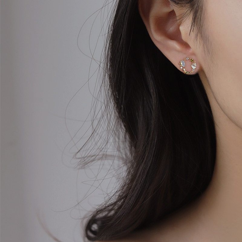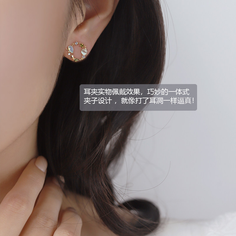 📚 精致小巧无痛蚊香盘耳夹女无耳洞猫眼耳钉绿色锆石花环超仙夹耳环