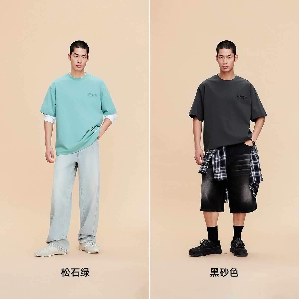 📚 【遮热】杰克琼斯男装夏季T恤时尚百搭字母图案印花罗纹圆领宽松