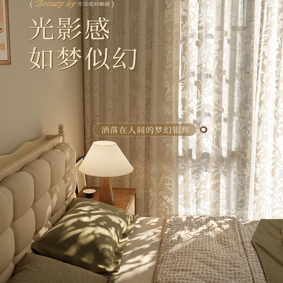 📚 月枝影白纱帘法式小窗帘遮光2025新款卧室高级感透光不透人客厅布