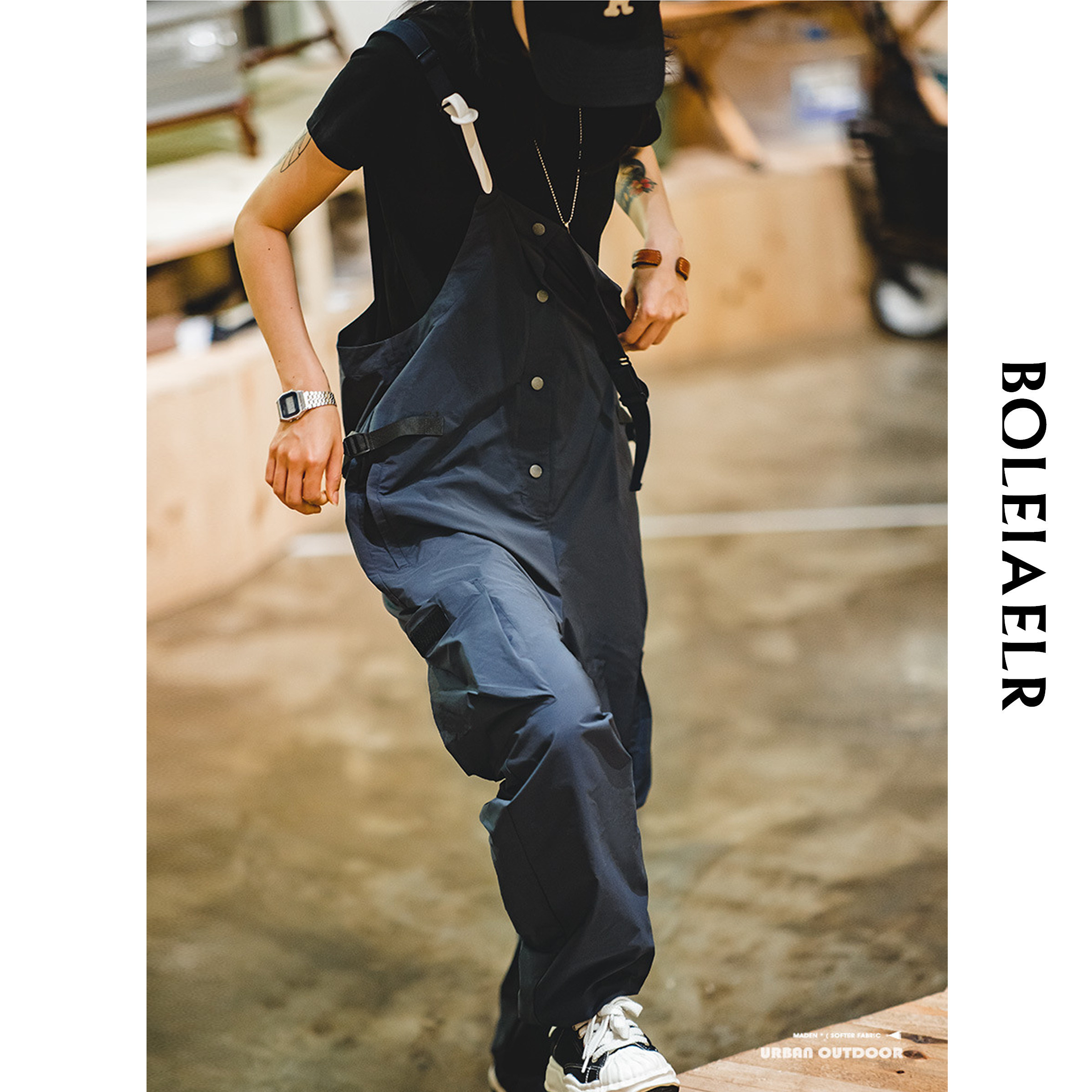📚 BOLEIAELR/山系露营防泼水工装背带裤女大口袋宽松束脚阔腿裤春