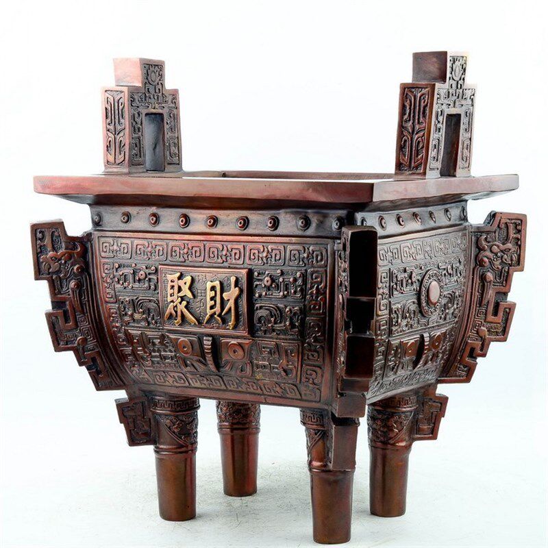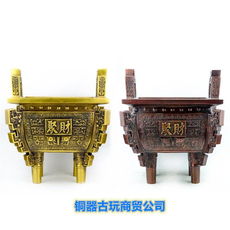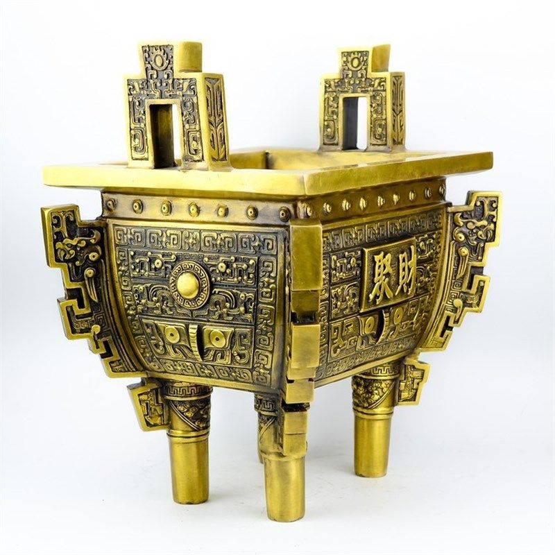 📚 鼎摆件纯铜招财镇宅办q公室开业乔迁礼品落地四方铜鼎香炉家用大