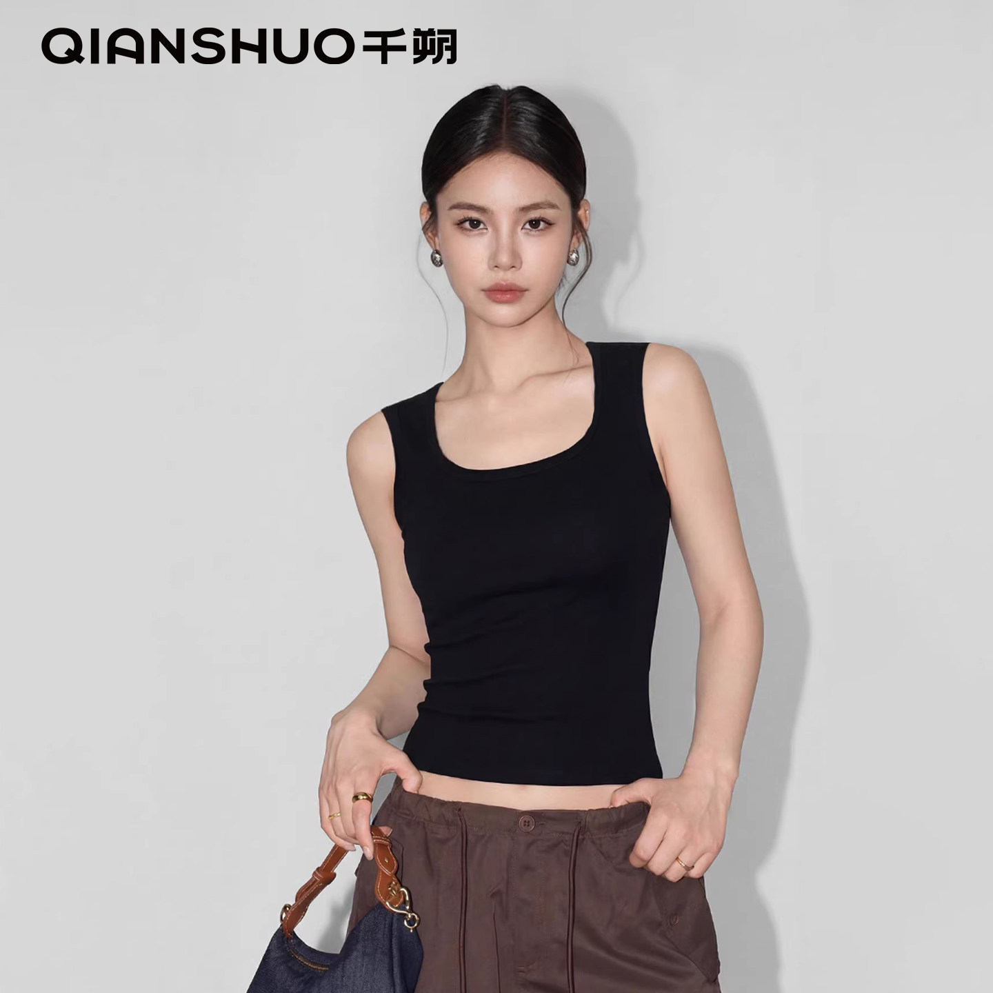 📚 千朔巨遮副乳宽肩带U领工字小背心女夏外穿修身吊带内搭不带胸垫