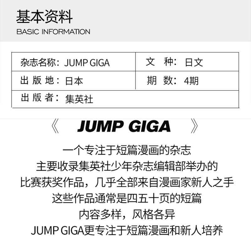 67¥ HU591 bkCOU7FRXt0¥ https://m.tb.cn/h.7JIkN1U 【单期/订阅】 周刊少年JUMP ジャンプGIGA 2025/2026年日本漫画日漫动漫杂志书 --------------------- 【原售价】369元 【现售价】369元。