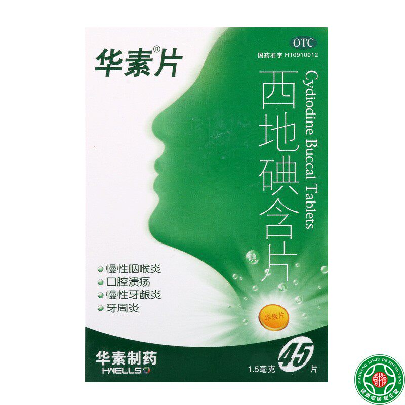 📚 华素片西地碘含片45片/盒慢性咽喉炎口腔溃疡牙周炎牙龈炎