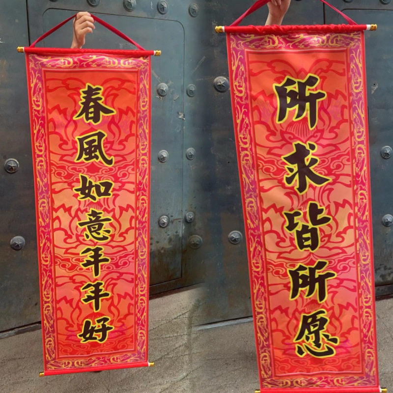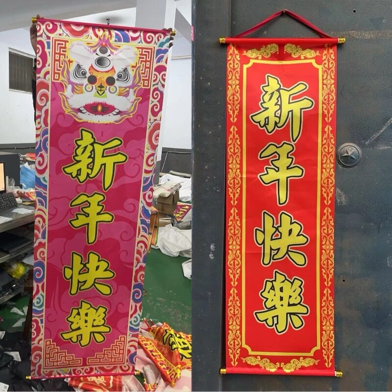 📚 舞狮吐青对联定制开业卷轴春联条幅横幅手持结婚年会表演醒狮旗子