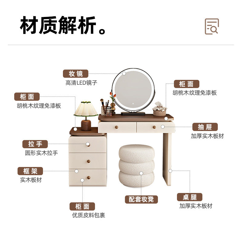 💥心动2025新款小户型实木梳妆台卧室💖现代简约奶油风主卧化妆桌斗柜,券后价660!✨