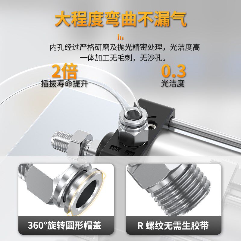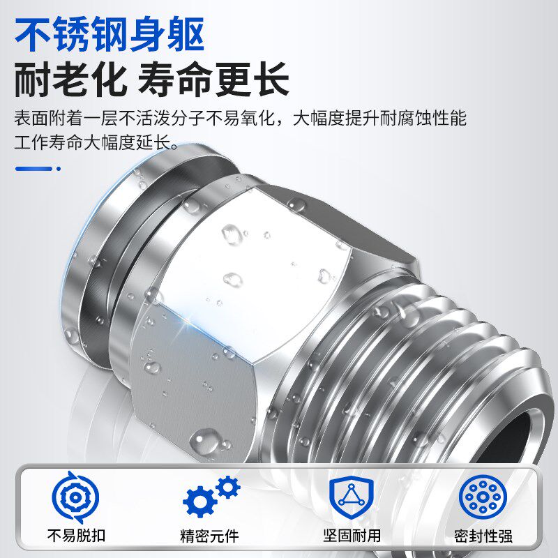 📚 不锈钢气管快速接头PC螺纹直通汽缸接头PL4-m5/6-01/8-02直角弯头