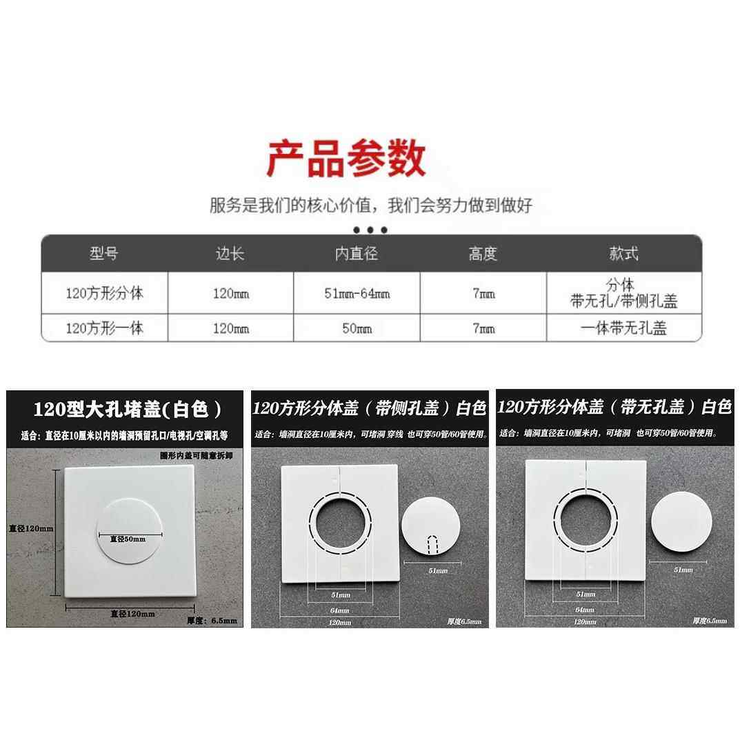📚 墙洞装饰盖120方形卡扣盖板空调孔电视线口遮挡50 63管道拆分堵盖