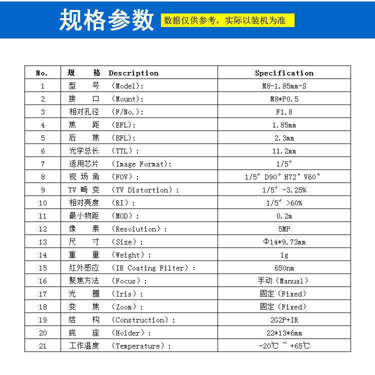 📚 M8接口广角1.85mm焦距镜头 1/5" OV7740监控车载摄像头可用安防