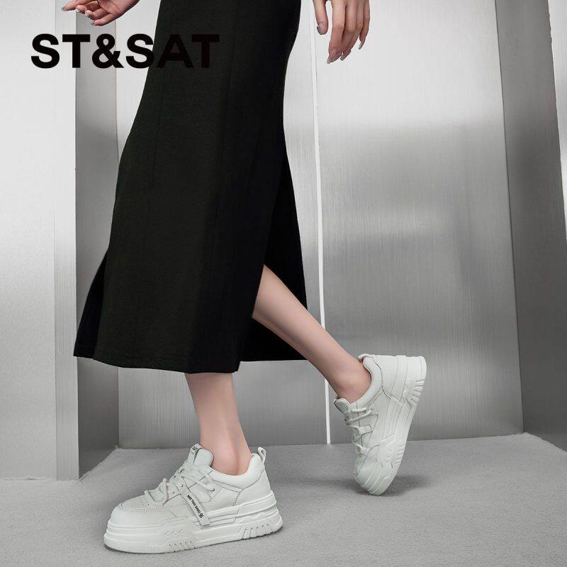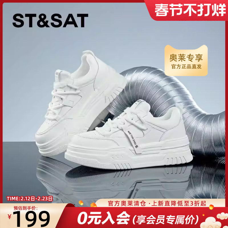 📚 星期六真皮板鞋女鞋秋季2025新款爆款休闲鞋子厚底百搭小白鞋女款