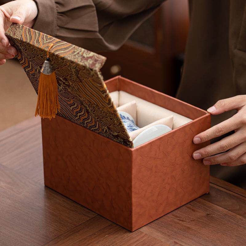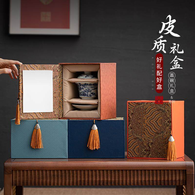 📚 三才盖碗锦盒高档皮质流苏礼盒包装盒盖碗茶叶罐礼品包装空盒子