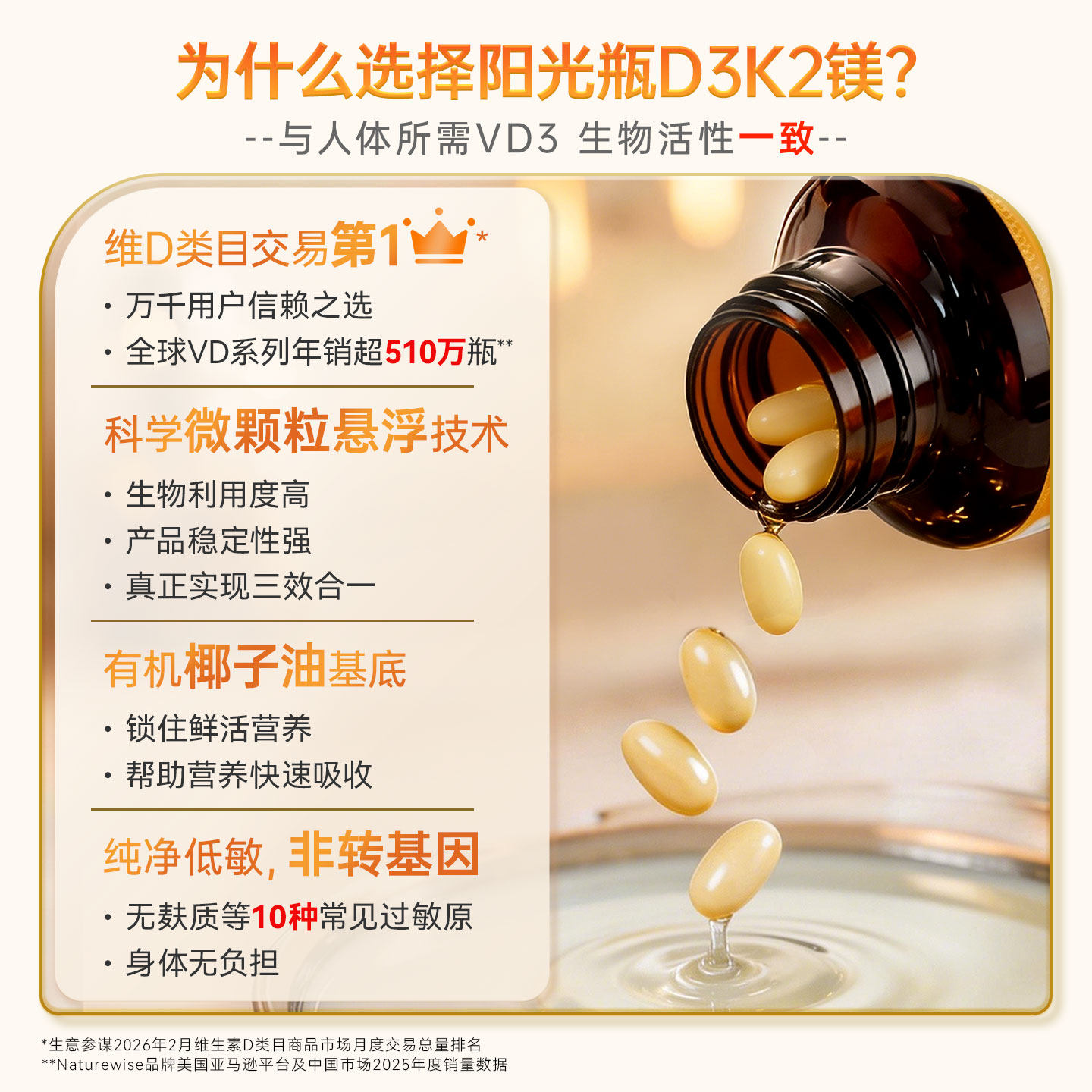 📚 Naturewise阳光瓶d3k2镁三合一5000iu维生素d3维D甘氨酸镁成人