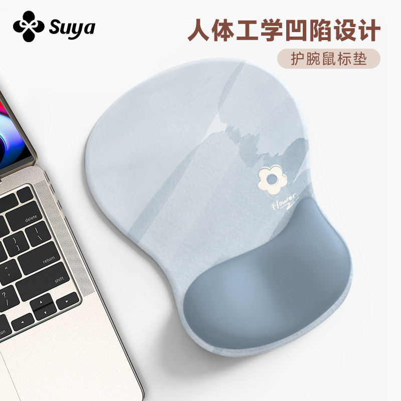 📚 SUYA苏雅蓝色小花鼠标垫护腕女生高颜值办公室人体工学手腕托垫子